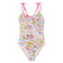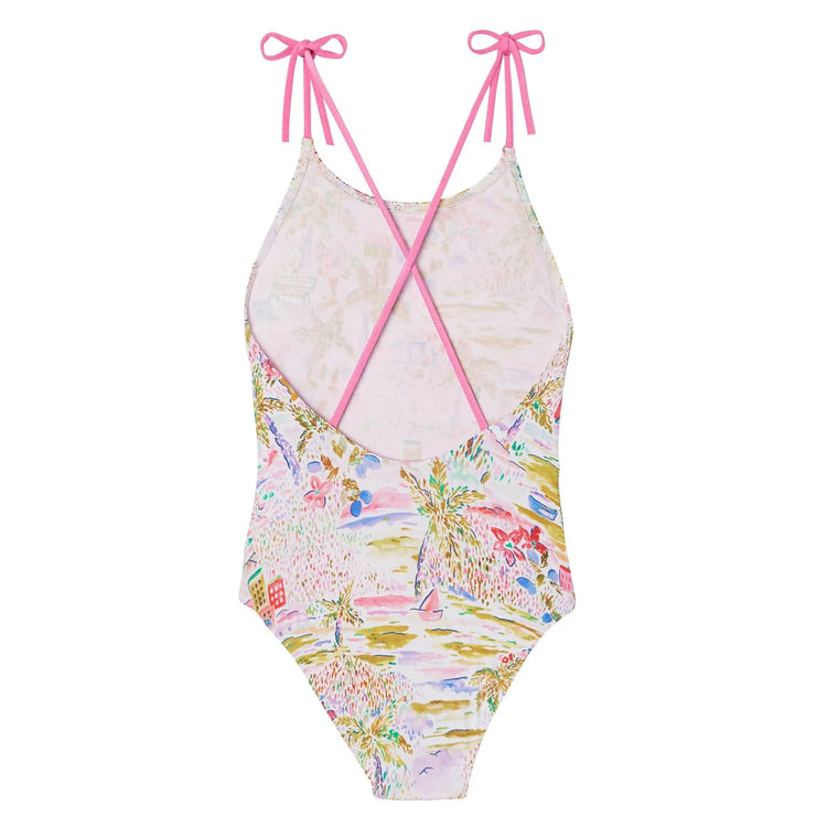Discover the "Gigi" one-piece swimwear by Lison Paris, a chic and refreshing model that will brighten up your vacation. Its adjustable and contrasting tie adapts perfectly to the morphology of each child for optimal comfort. Its exclusive print designed by French artists, stands out with its bright and joyful colors. Made from recycled European fabric with UPF50+ sun protection, the "Gigi" swimwear combines style, safety and durability. The perfect ally for a dazzling vacation under the sun!