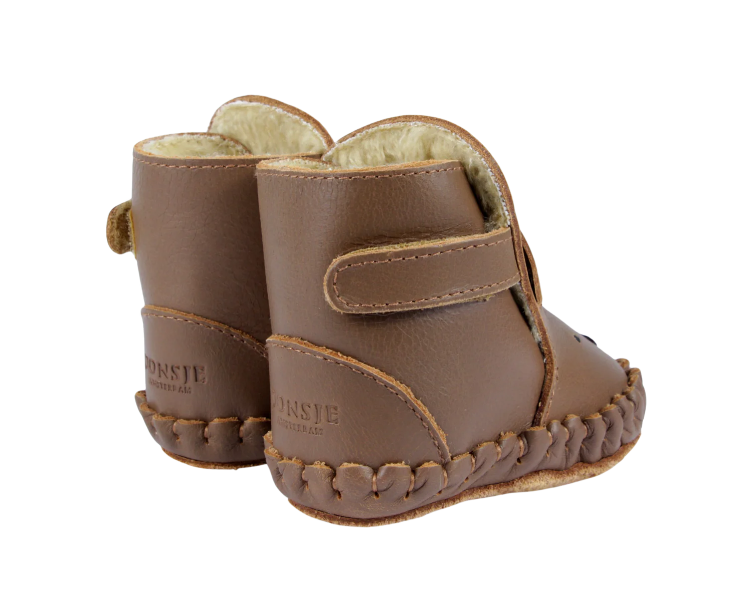 Love you Beary much! These warmly lined boots have a wide entry to easily fit every foot! They are a healthy basis for all little feet with an easy velcro fastening. Our classic Donsje characters on the toe of the shoe create an instant cute-factor overload! The Kapi Lining are the perfect, well-fitting shoes for those long-awaited first steps! Delivered in a cute gift bag.