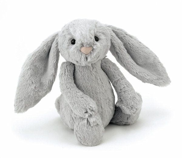 Lovely Jellycat soft toy in the shape of a rabbit in grey.