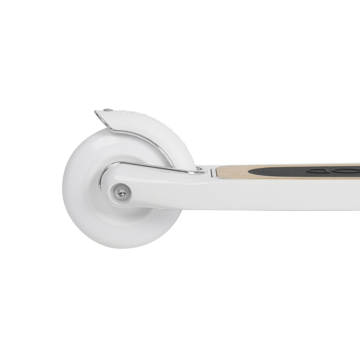 This cream two-wheel scooter is built to last the test of time and is equipped with an ergonomic T-handlebar that can easily be adjusted to your kid’s height, a lightweight aluminum frame, classic steering system – just like a bike, vintage-inspired rubber grips and a wooden oak anti-slip deck for a safe ride.
