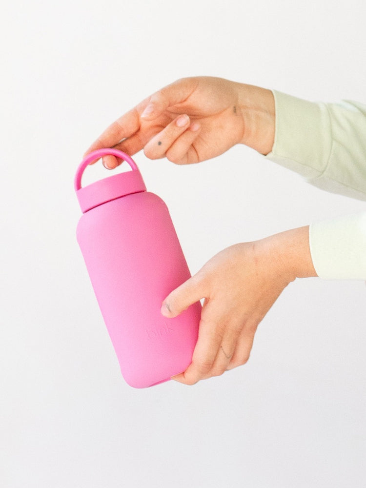Vatnsflaska úr gleri og sílikioni hönnuð sérstaklega fyrir mæður. Það er mikilvægt að huga vel að vatnsinntöku á meðgöngu og í brjóstagjöf fyrir móður og barn, sem gerir Bink að fullkomnum félaga.
