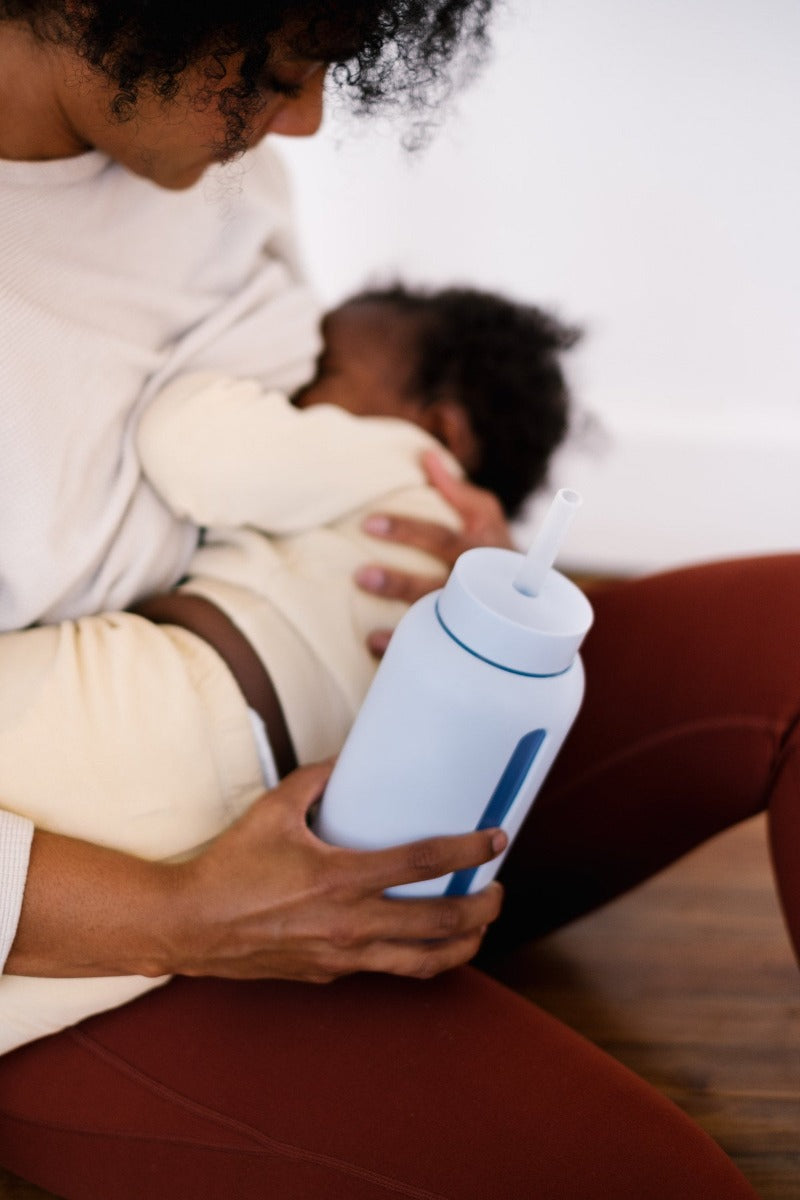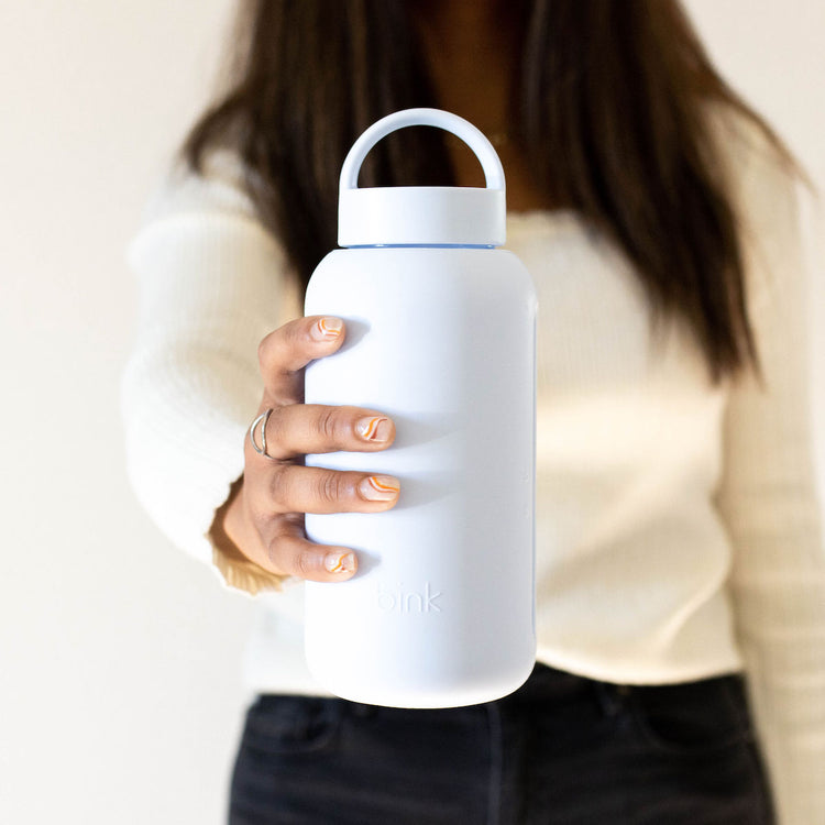 Vatnsflaska úr gleri og sílikioni hönnuð sérstaklega fyrir mæður. Það er mikilvægt að huga vel að vatnsinntöku á meðgöngu og í brjóstagjöf fyrir móður og barn, sem gerir Bink að fullkomnum félaga.