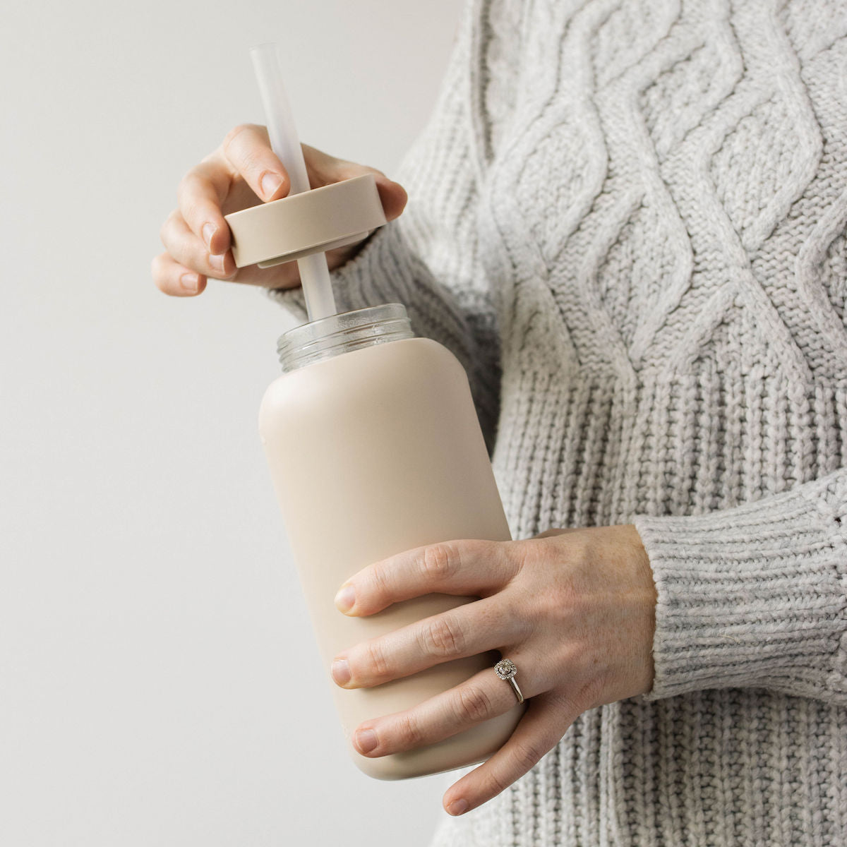Hönnunin gerir það einstaklega auðvelt að fylgjast með hversu mikið magn þú drekkur yfir daginn. Hægt er að bæta við fjölnota röri með loki sem auðveldar þér enn fremur lífið með lítið kríli.