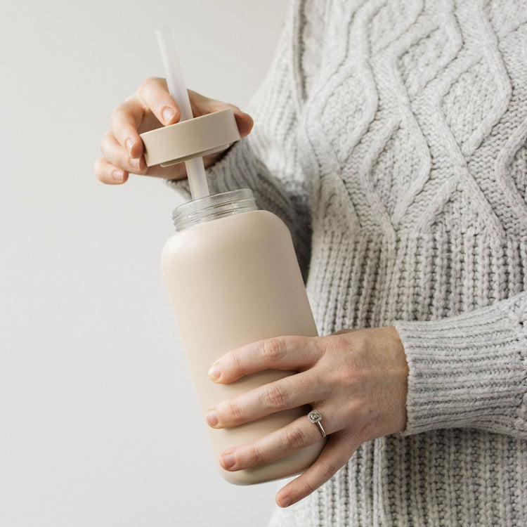 Vatnsflaska úr gleri og sílikioni hönnuð sérstaklega fyrir mæður. Það er mikilvægt að huga vel að vatnsinntöku á meðgöngu og í brjóstagjöf fyrir móður og barn, sem gerir Bink að fullkomnum félaga.