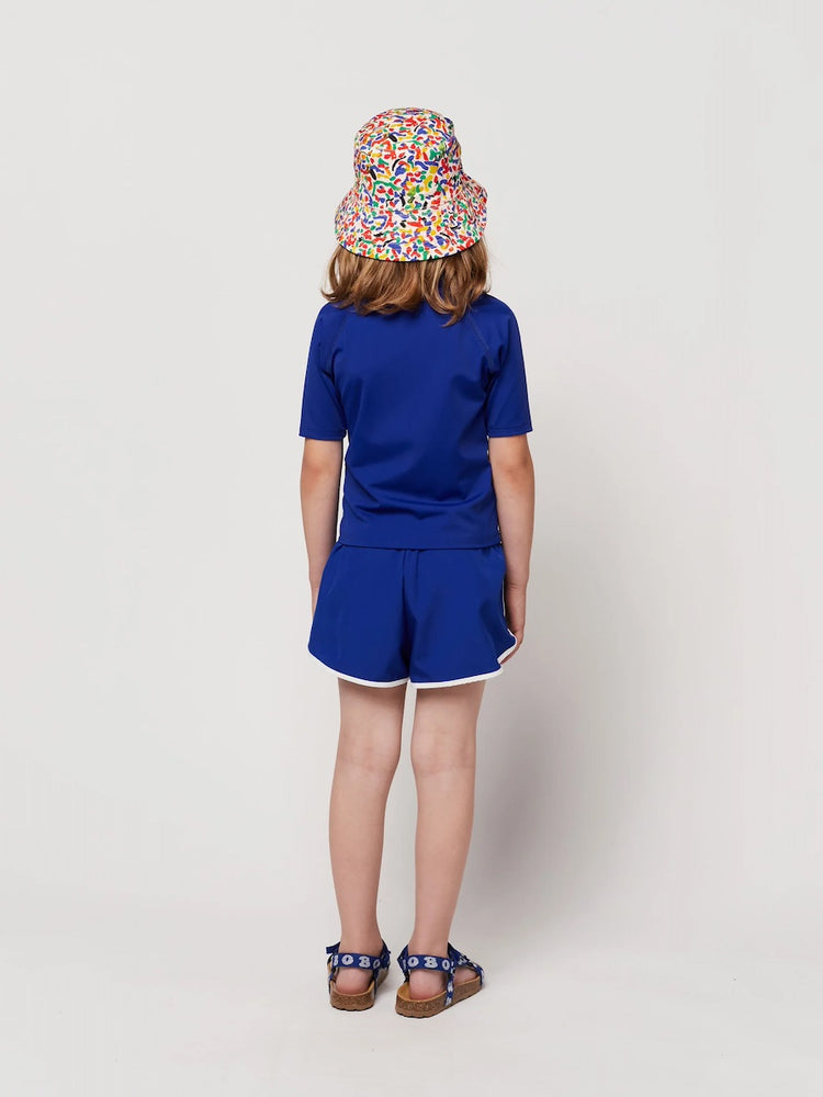 78% recycled polyamide, 22% elastane blue swim t-shirt. Designed with raglan sleeves, slim fit, high neck and elbow-length sleeves. Made in Spain