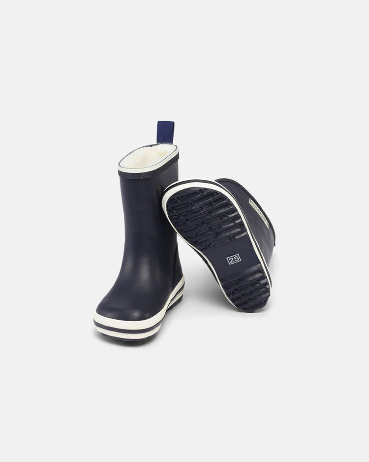 Charly High Warm is the winter version of our popular iconic rubber boot, Charly, which has been part of our collections for many generations. The classic rubber boot is a timeless and reliable choice, perfect for keeping little feet dry and warm during cold and rainy days. It's designed to be durable and long-lasting, with a non-slip sole to provide stability on wet surfaces.