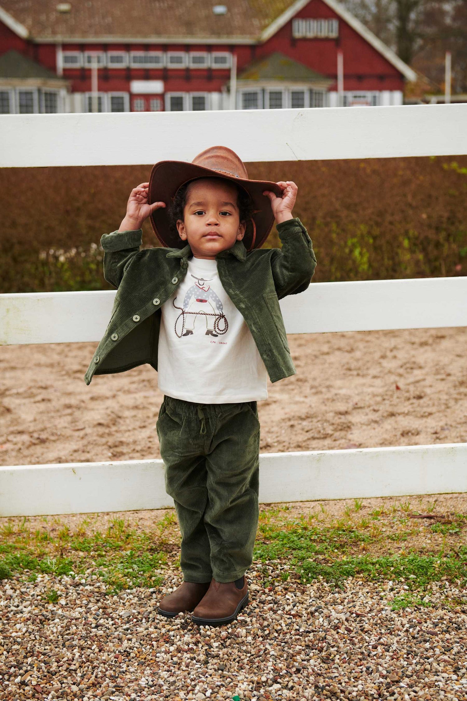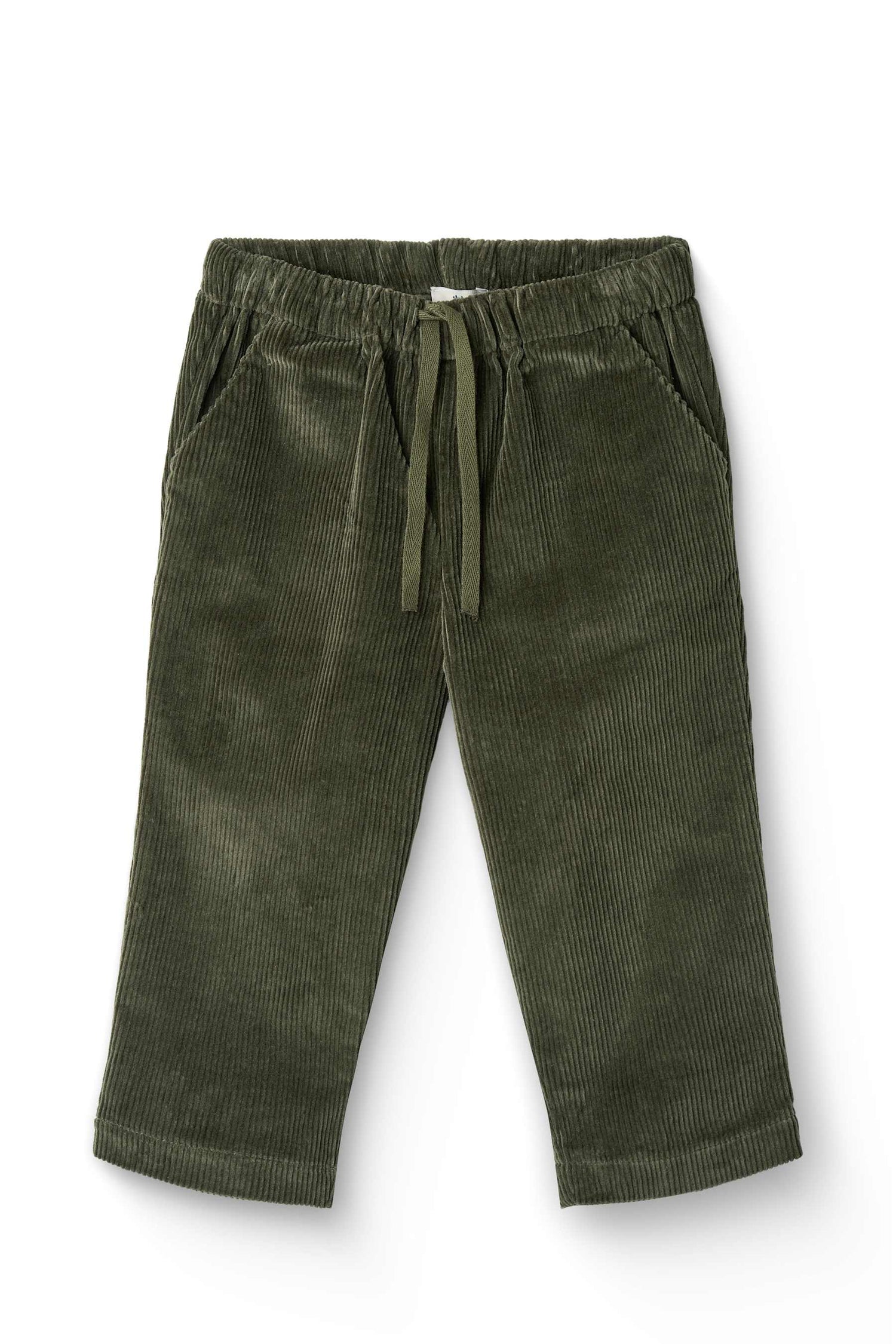 This corduroy pants has one pockets in each side. The pants has strings at the waist, so the pants can be adjusted.