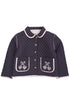 At front the jackets has two pockets and buttons at the middle.. All edges as well as the lining are made in striped organic cotton.