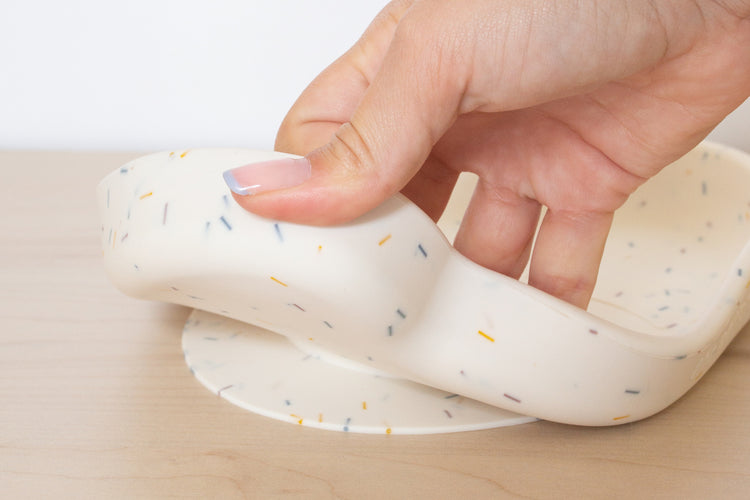 Diskurinn er með sogfót sem festist við nánast hvaða yfirborð sem er og rennur því ekki til. Úr sílikoni og laus við BPA og önnur mýkiefni. Diskinn má þvo í uppþvottavél við 40 til 230 gráður án þess að það hafi áhrif á sílikonið.