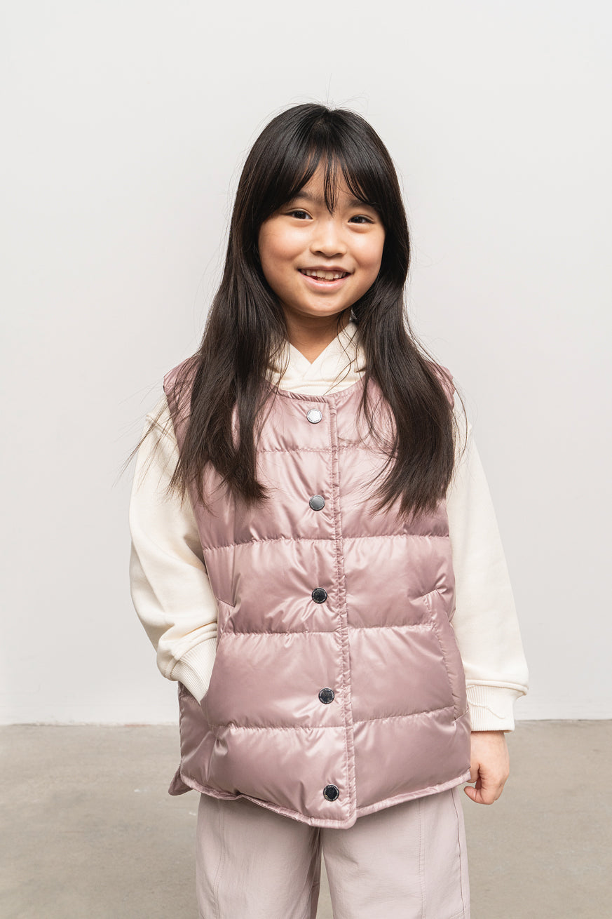 Fluff stylish and compact, ultra-light colourful down vests are the perfect additional layer to put on when you want your kid to be comfortable and have their back covered.