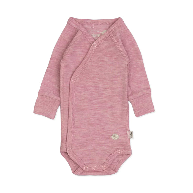Wrap around bodysuit with long sleeves for newborns and babies, made in the softest Merino wool. Easy to put on/off with the wrap around design. The perfect choice for the inner layer, as it keeps the baby warm and comfortable all day long. Merino wool helps to maintain the baby's body temperature, and keeping them not too warm nor cold.