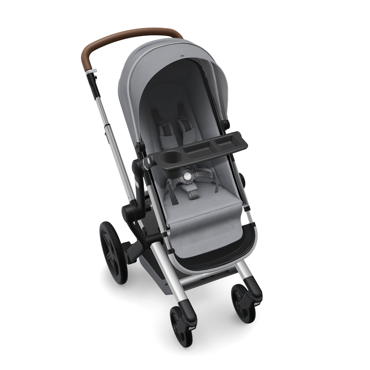 The food tray is secured in an upright position to minimise spills, even with the seat reclined. And if the tray does get dirty, you can just detach it from the stroller and run it through the dishwasher.