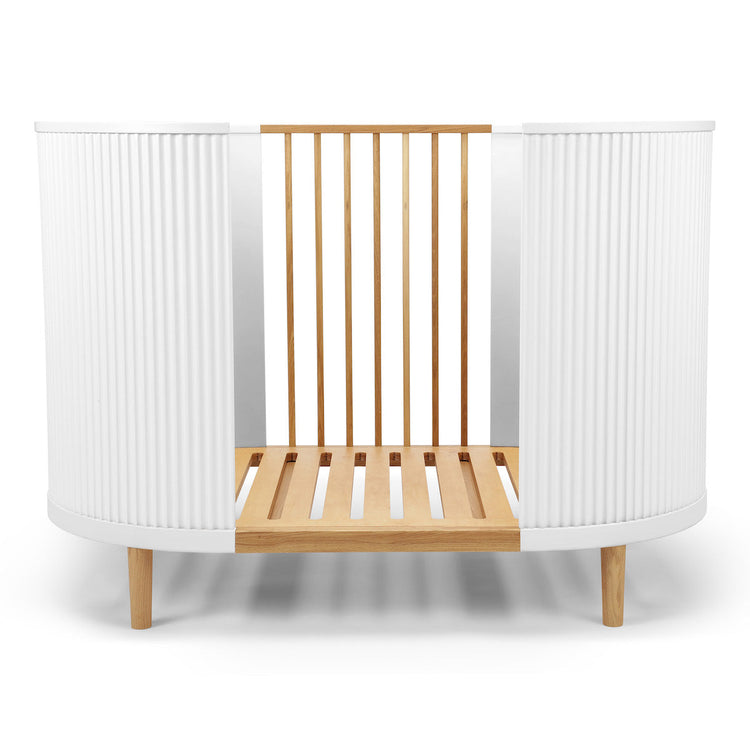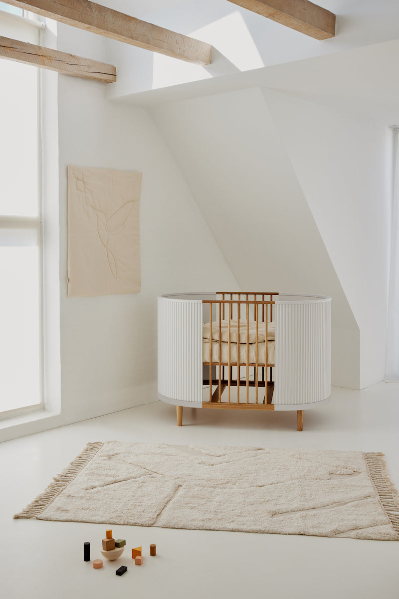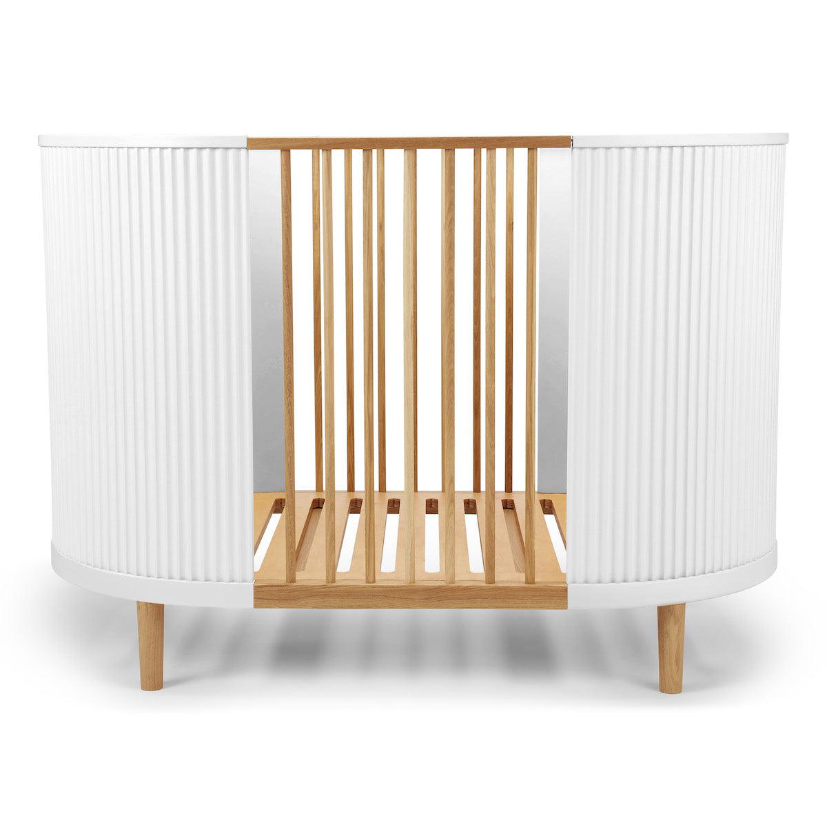 Einstakt barnarúm með klassískri tímalausri hönnun – sporöskjulaga glæsilegt form og úthugsuð virkni og hönnun sem hægt er að nota í fleiri kynslóðir.