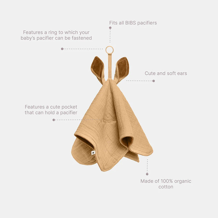 Your baby will love to cuddle with our soft and snuggly cuddle cloth. It is an indispensable essential for babies to provide soothing security and comfort. Our cuddle cloth is made of ultra-soft organic cotton. The cuddle cloth has sweet kangaroo ears and a ring to which your baby’s pacifier can be fastened. It fits all BIBS pacifiers, so your baby always has its favorite pacifier close.