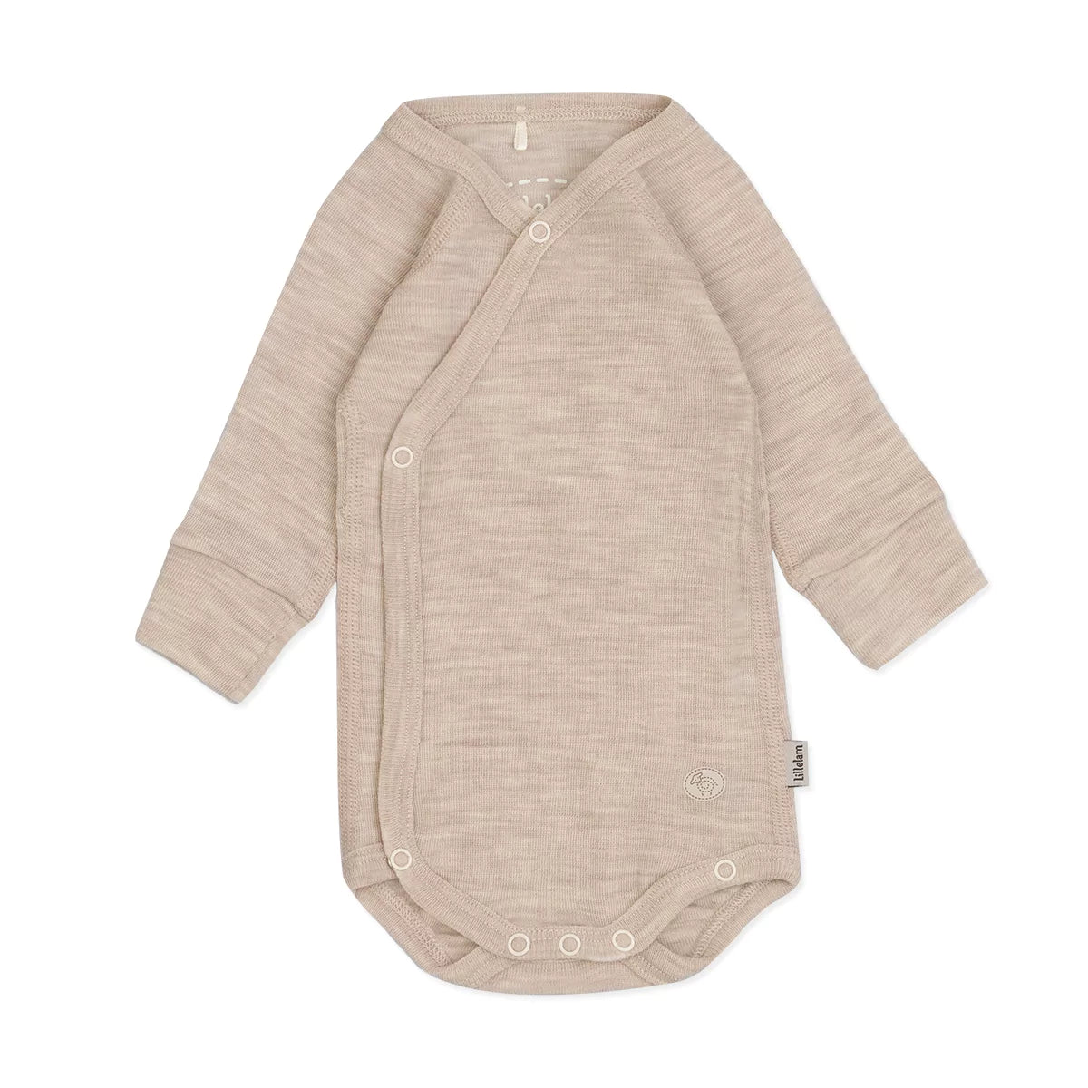 Wrap around bodysuit with long sleeves for newborns and babies, made in the softest Merino wool. Easy to put on/off with the wrap around design. The perfect choice for the inner layer, as it keeps the baby warm and comfortable all day long. Merino wool helps to maintain the baby's body temperature, and keeping them not too warm nor cold.