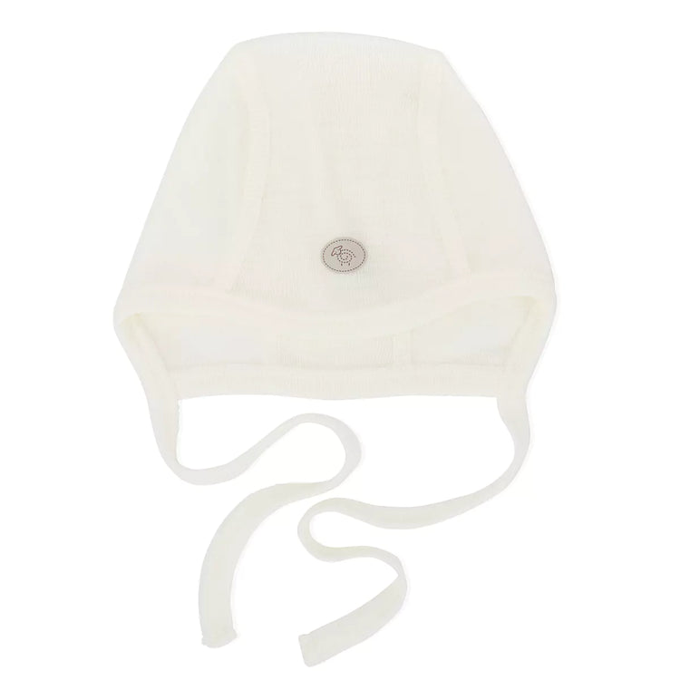 Wool hat with ties for newborns and premature babies in the softest Merino wool. We use the highest quality of merino wool available, with the lowest micron.This gives the garments extreme softness and comfort, as well as being itch-free, and non-irritating even to sensitive skin and is therefore perfect to use for premature babies.