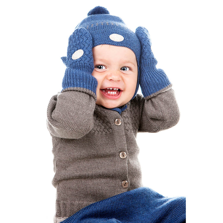 Warm and soft mittens knitted in 100% Merino wool, that will even keep your hands warm if they get wet. The smallest size comes without a thumb.