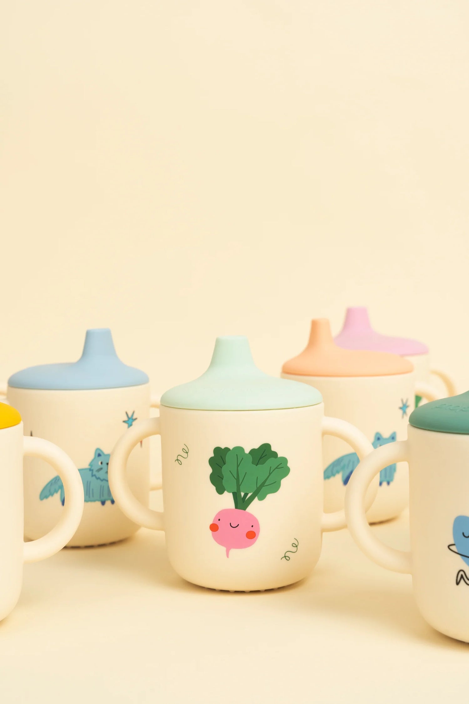 Our Silicone sippy cup for babies and toddlers consists of 100% LFGB silicone in food quality. Ideal for babies from 6 months and toddlers in the transition from bottle to cup. Our leak-proof sippy cup helps develop fine motor skills and promotes independent eating habits.