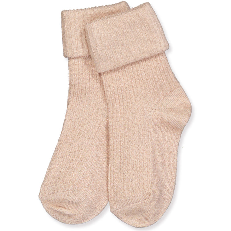 Classic ribbed baby sock with glitter in Bamboo Viscose from mpKids. The socks are knitted with a soft glitter yarn, which gives them a sparkling look. To ensure the socks have the best possible fit, they have an anatomically correct heel with a 90° angle.
