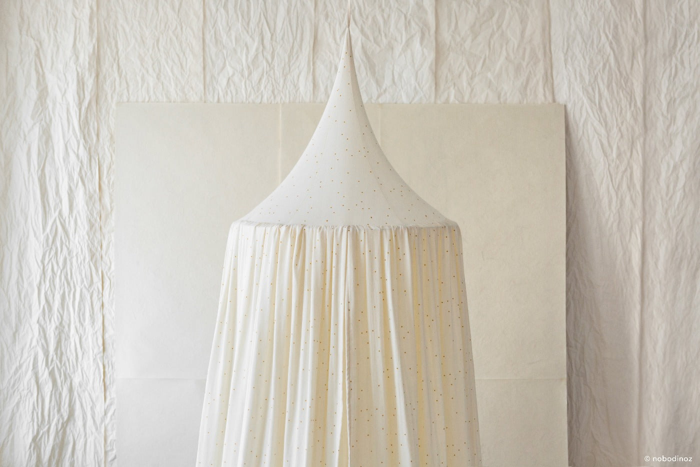 Reach for the sky and surrender yourself to the universe of dreams with this organic cotton canopy. Made of double muslin, its floaty and delicate drapery makes it a perfect bed decoration for your baby's crib or your kid's reading corner. Children will feel safe inside and will peacefully fall asleep.