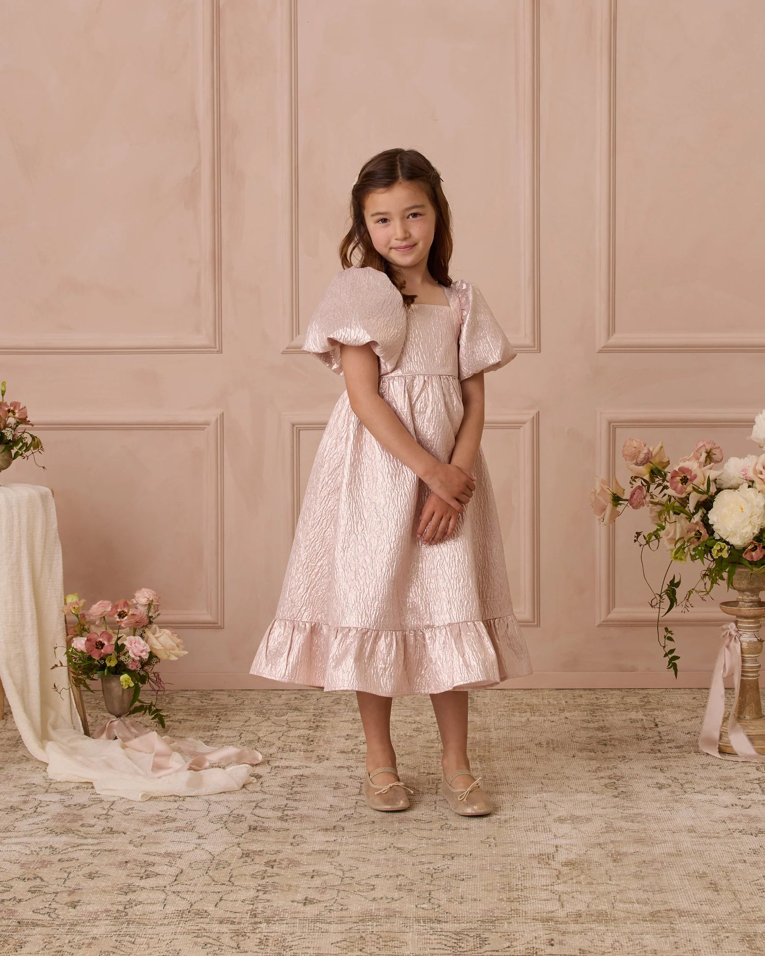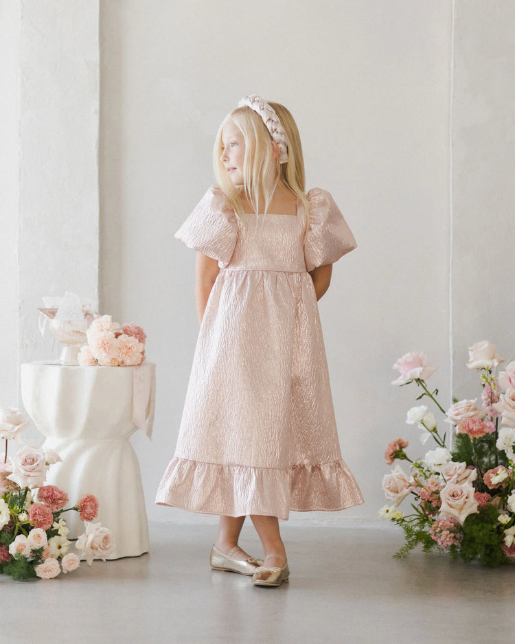 The ultimate party look - with shimmering fabric and fun puff sleeves to make every girl feel like a princess.