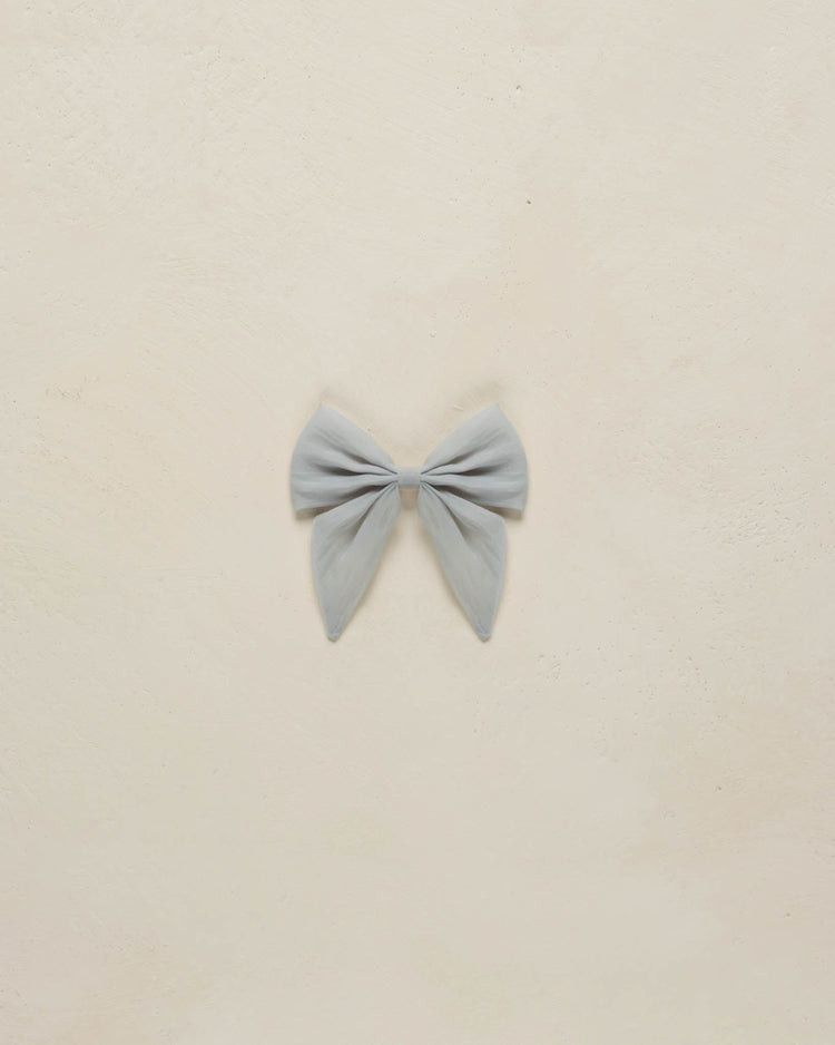 A sweet organza bow attached to a rose gold alligator clip for easy wear.
