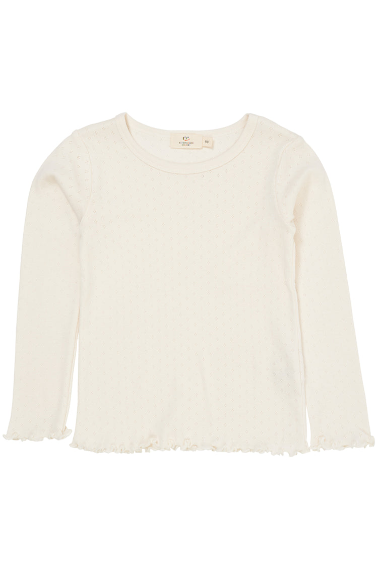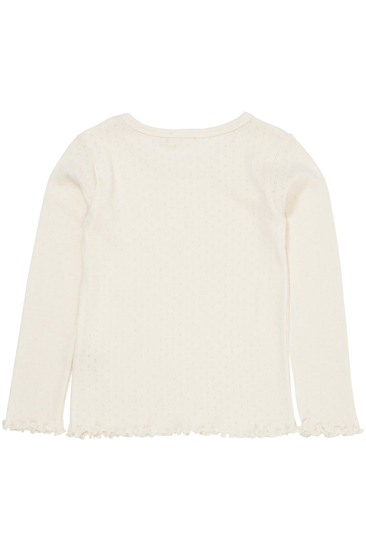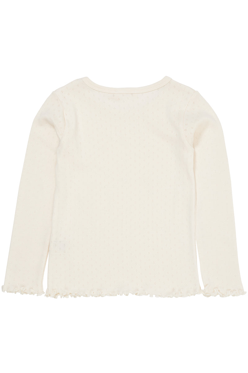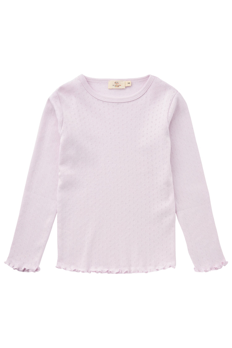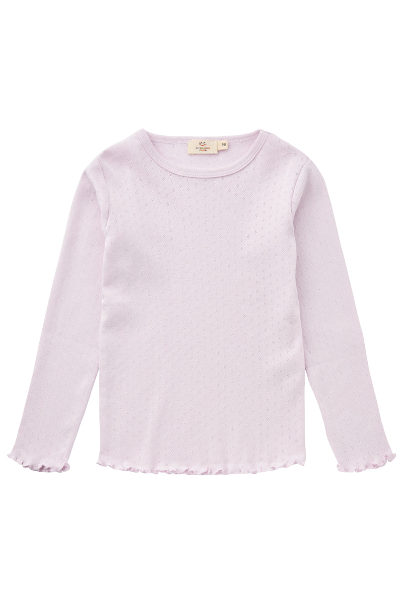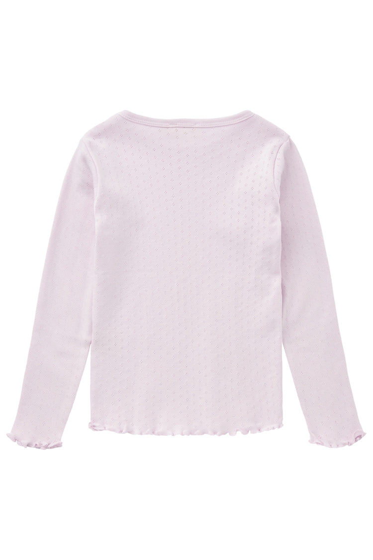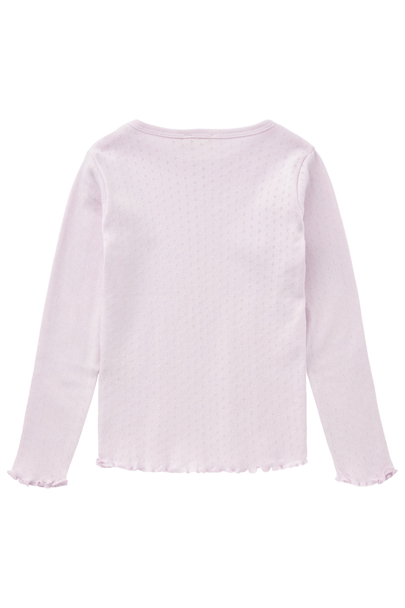 Featuring a delicate pointelle knit design, this long-sleeve tee is light, breathable, and soft, making it ideal for layering or wearing on its own.