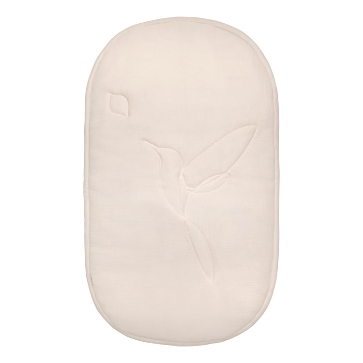This beautiful oval playmat, made from organic muslin cotton, is perfect for creating a soft and comfortable play area on the floor.