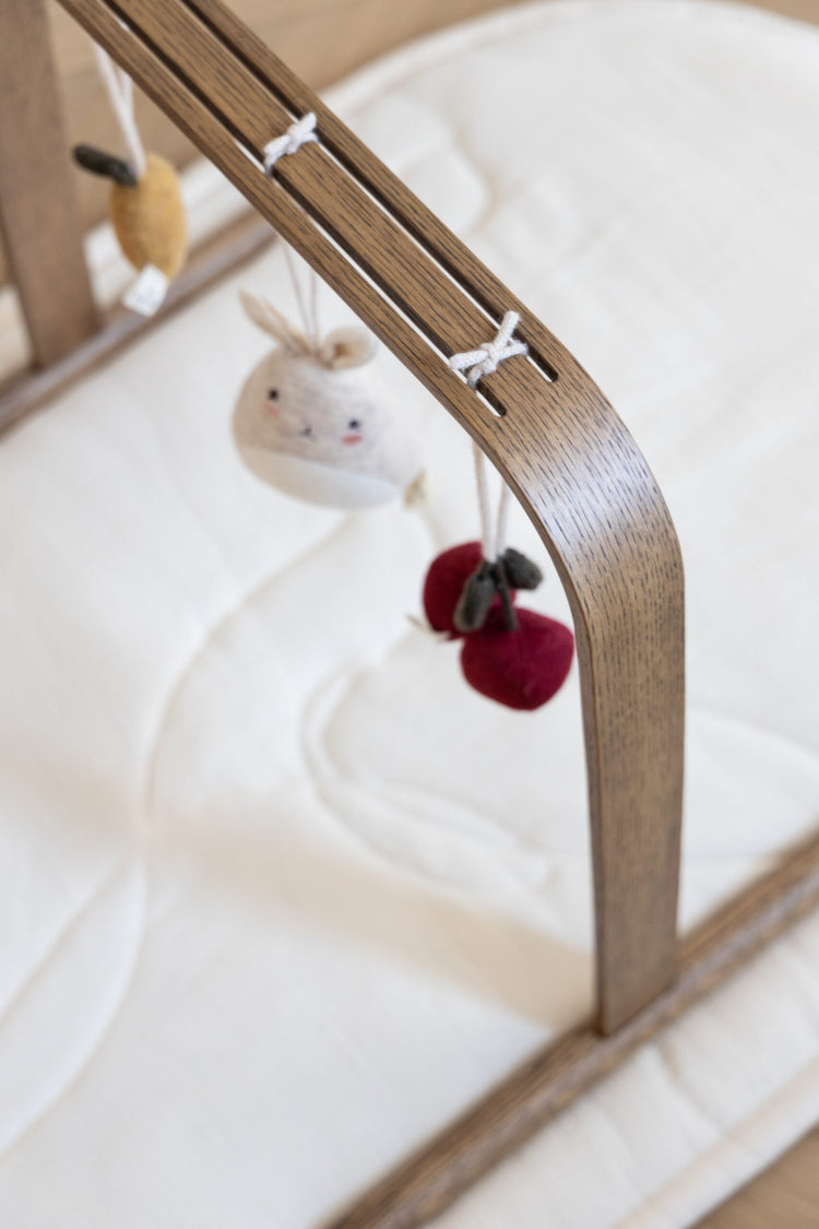 The playmat is thoughtfully designed to fit perfectly in our Kai baby cot, allowing it to also be used as a top mattress for added comfort and support.