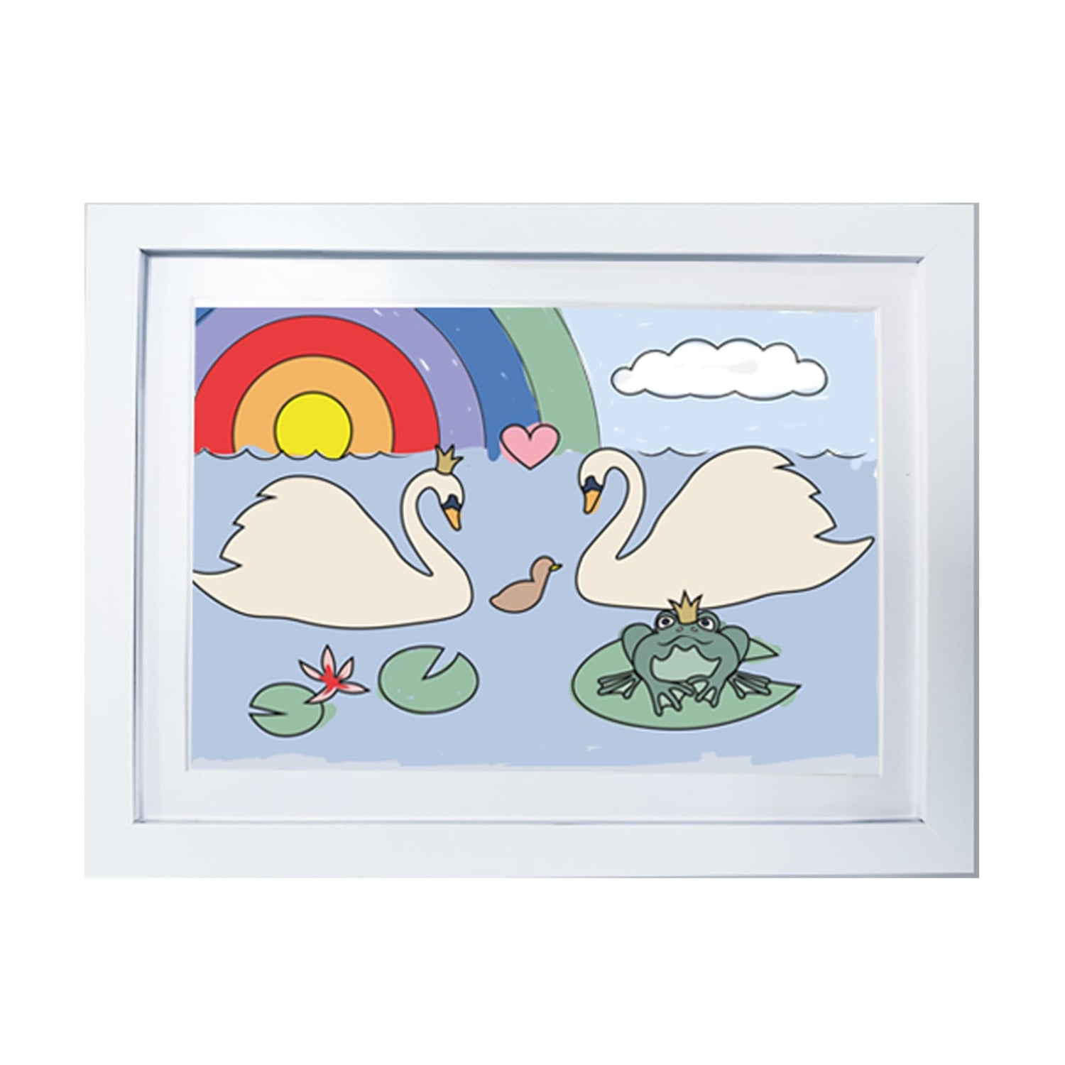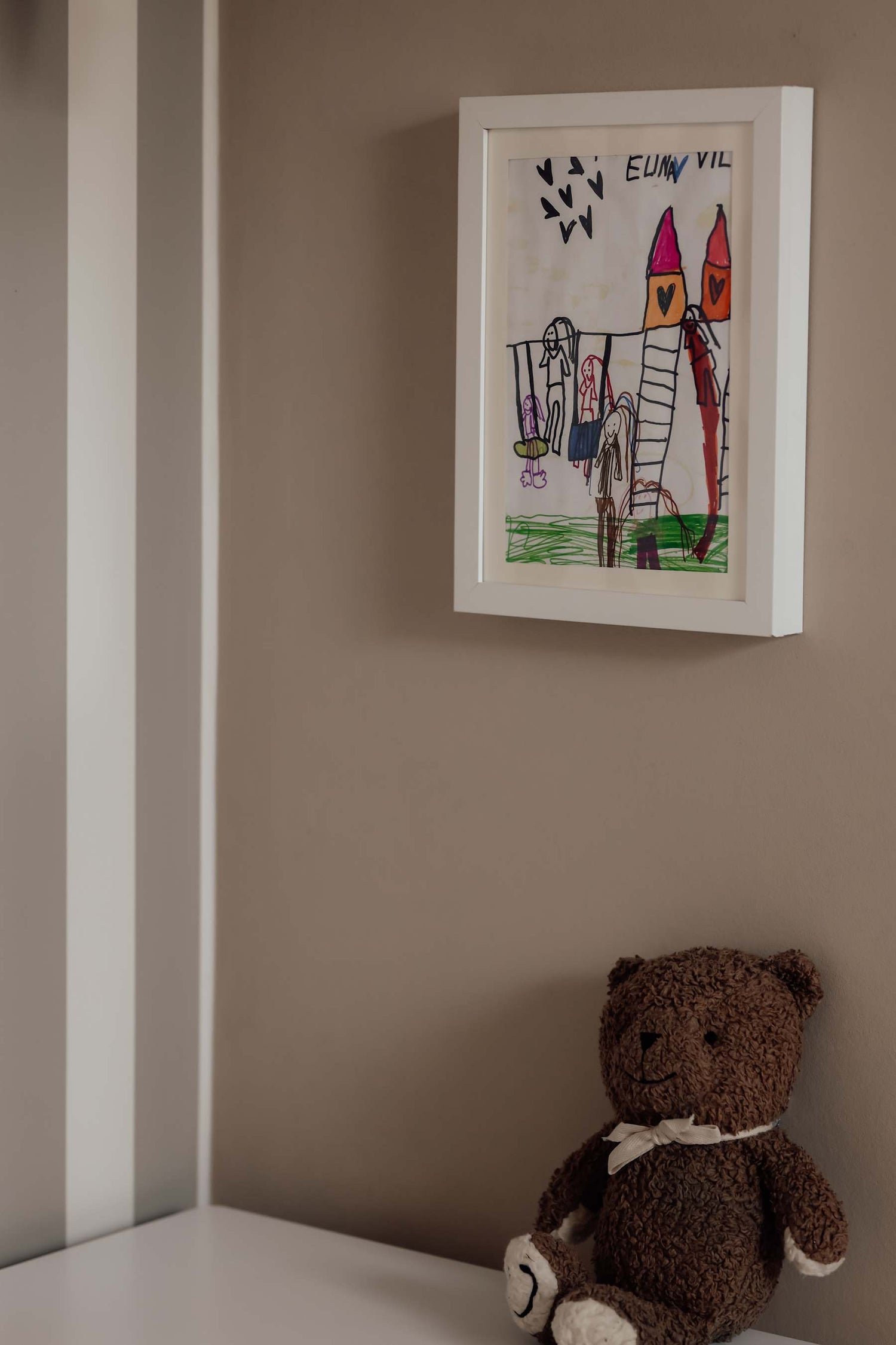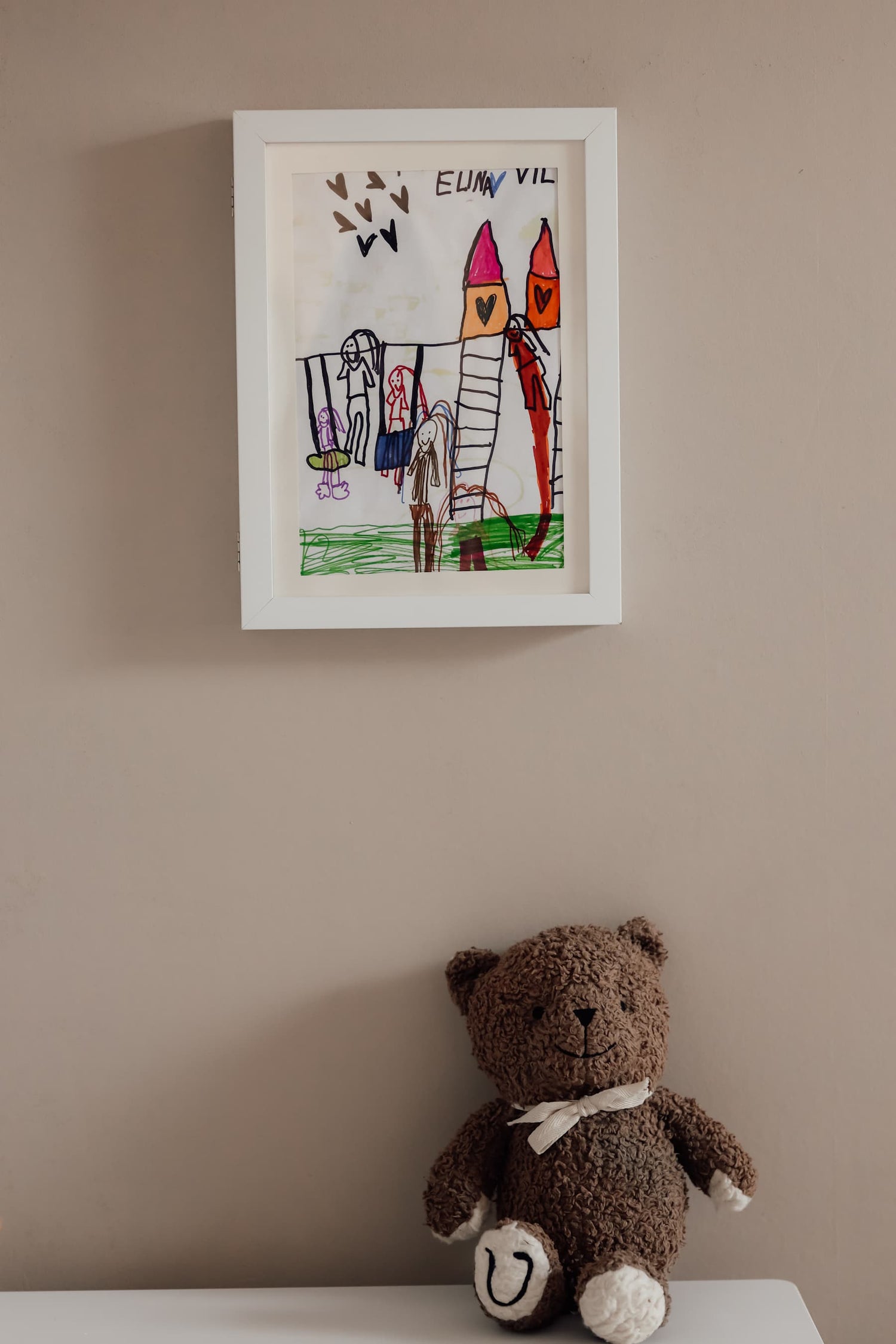 This gallery frame from Vanilla Copenhagen is perfect for framing your children's drawings and paintings. The frame can hold up to 80 drawings in A4 format. It has a magnetic closure in the front, making it easy to insert the drawings. The drawings that are not displayed can be stored behind the frame using two elastic bands. The frame has two hanging hooks on the back, so it can be hung both horizontally and vertically. The frame is made of MDF wood and has an acrylic panel that does not splinter like glass, making it suitable for a child's room.