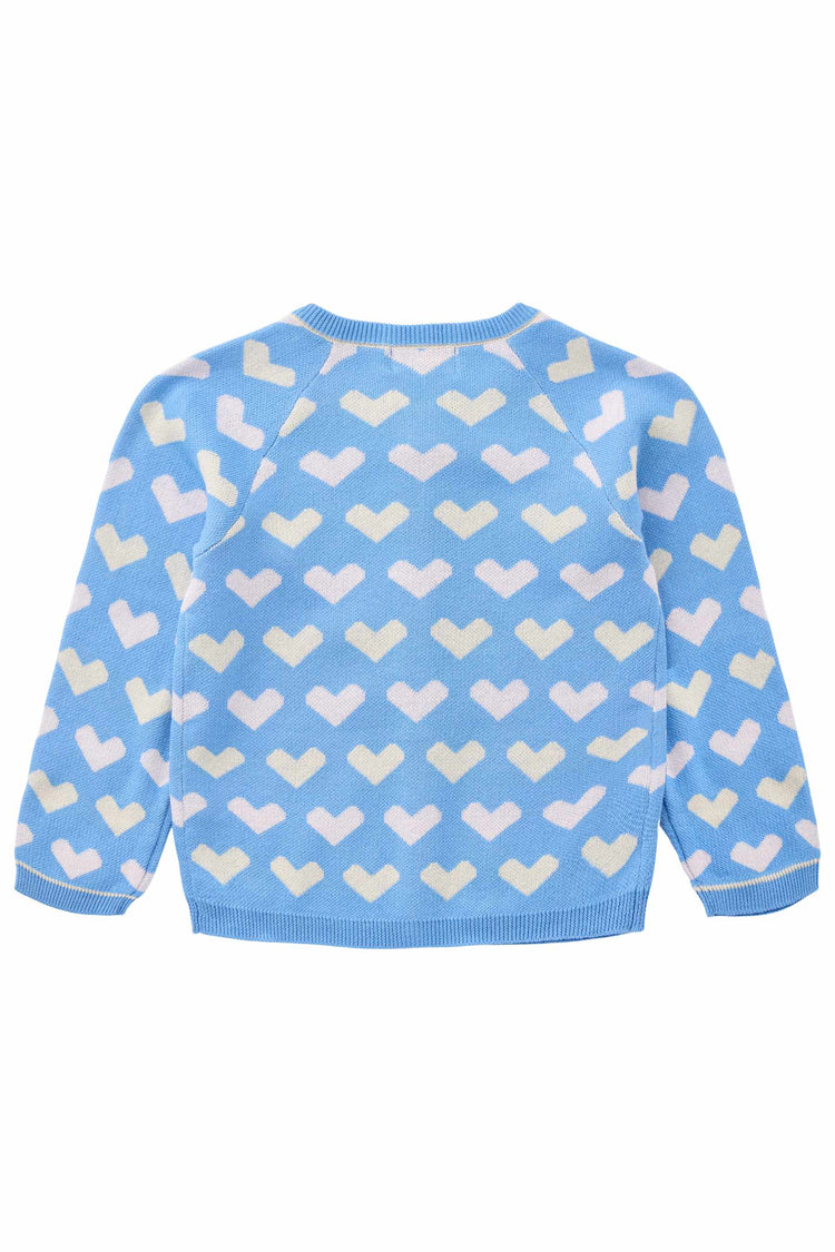 Peysa | Knitted Heart Berry & Sky Blue