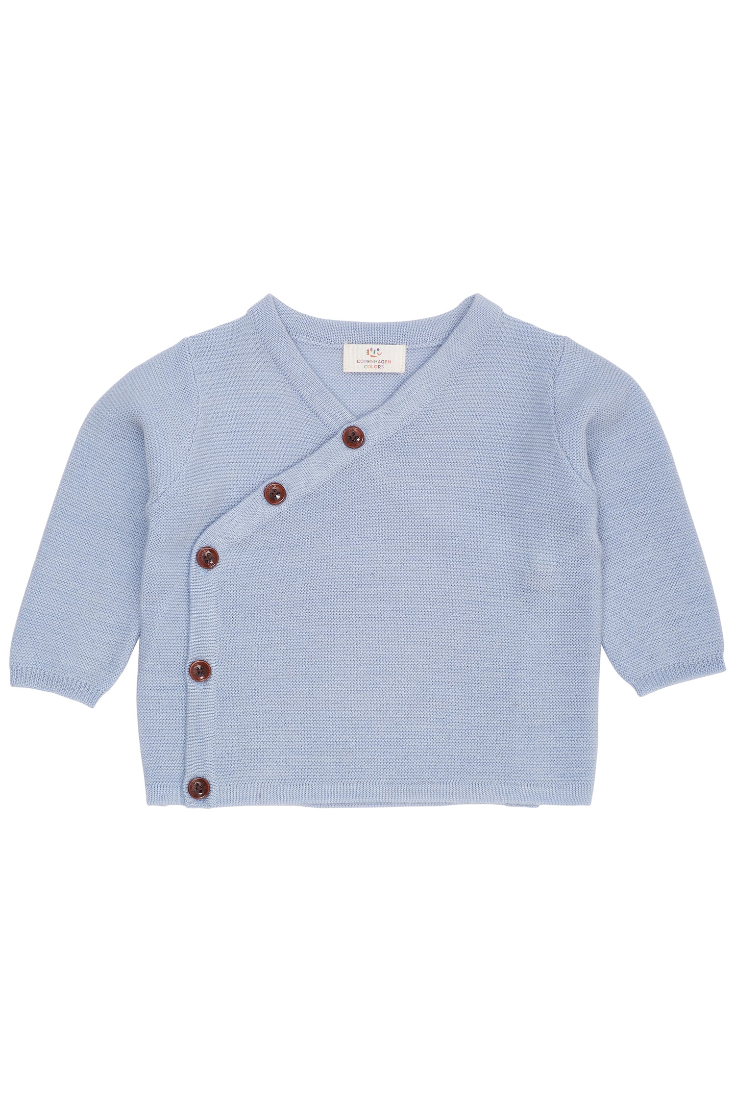Knitted in pure merino wool, this cross-over cardigan wraps your little one in breathable warmth and softness. The garter stitch offers a cozy texture, while the side-tie closure makes dressing easy and secure. T