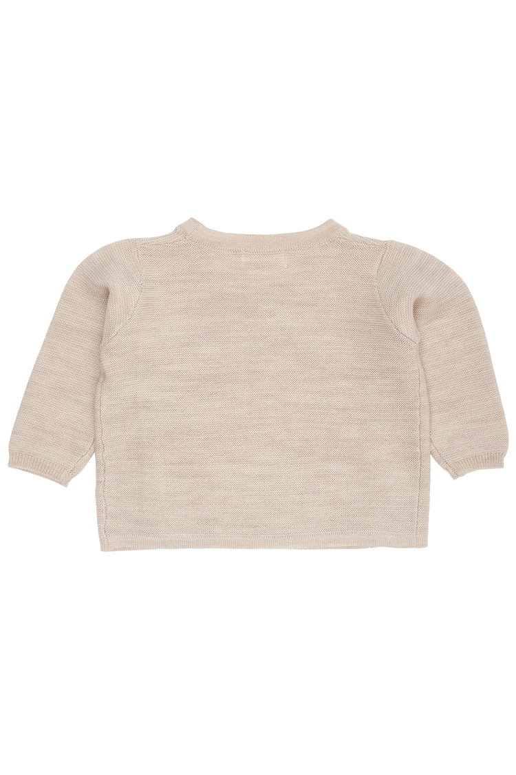 Knitted in pure merino wool, this cross-over cardigan wraps your little one in breathable warmth and softness. The garter stitch offers a cozy texture, while the side-tie closure makes dressing easy and secure. T