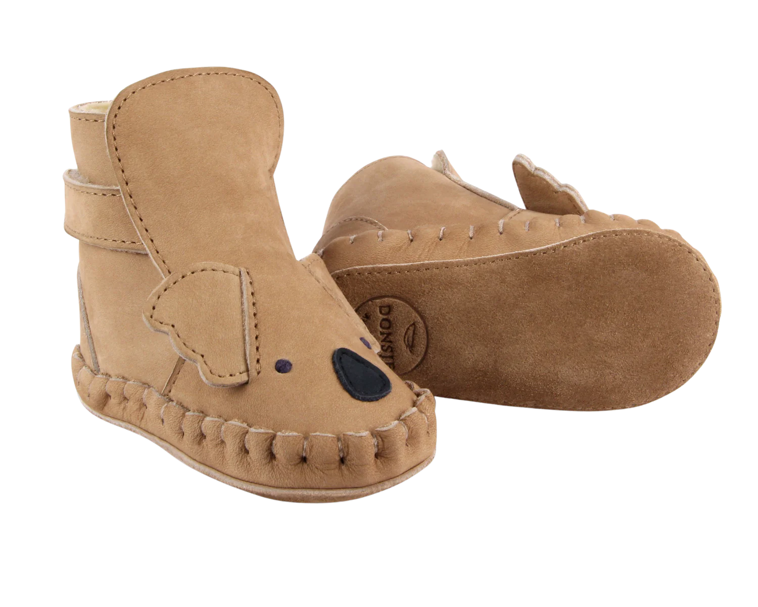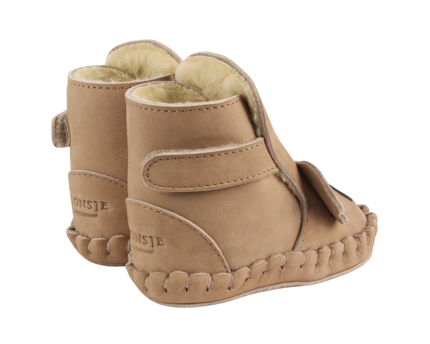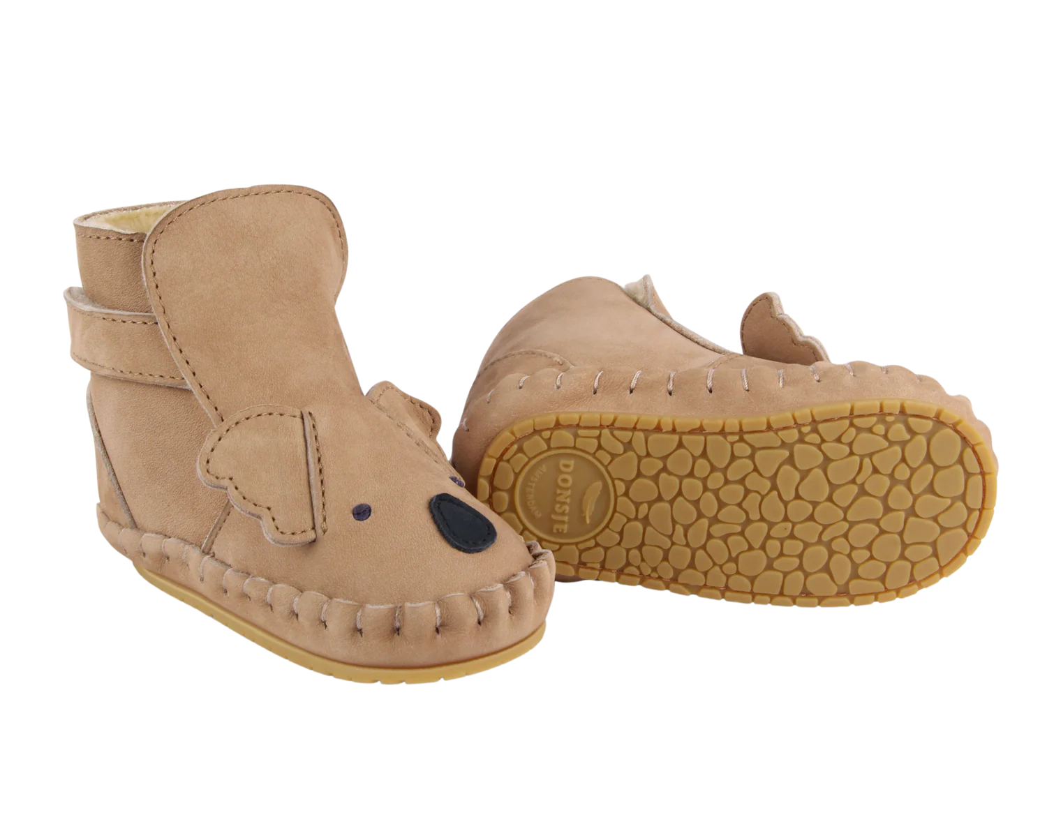 Wintery steps! These warmly lined boots have a wide entry to fit every foot. Our classic Donsje characters on the toe of the shoe create an instant cute-factor! The Kapi Lining are perfect, well-fitting shoes for long-awaited first steps! Made from 100% premium leather and complete with easy velcro fastening.