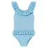 The Bahamas swimsuit for baby girls comes in a bright blue. The shiny lurex creates a luminous effect reminiscent of the crystal clear waters of the Caribbean.