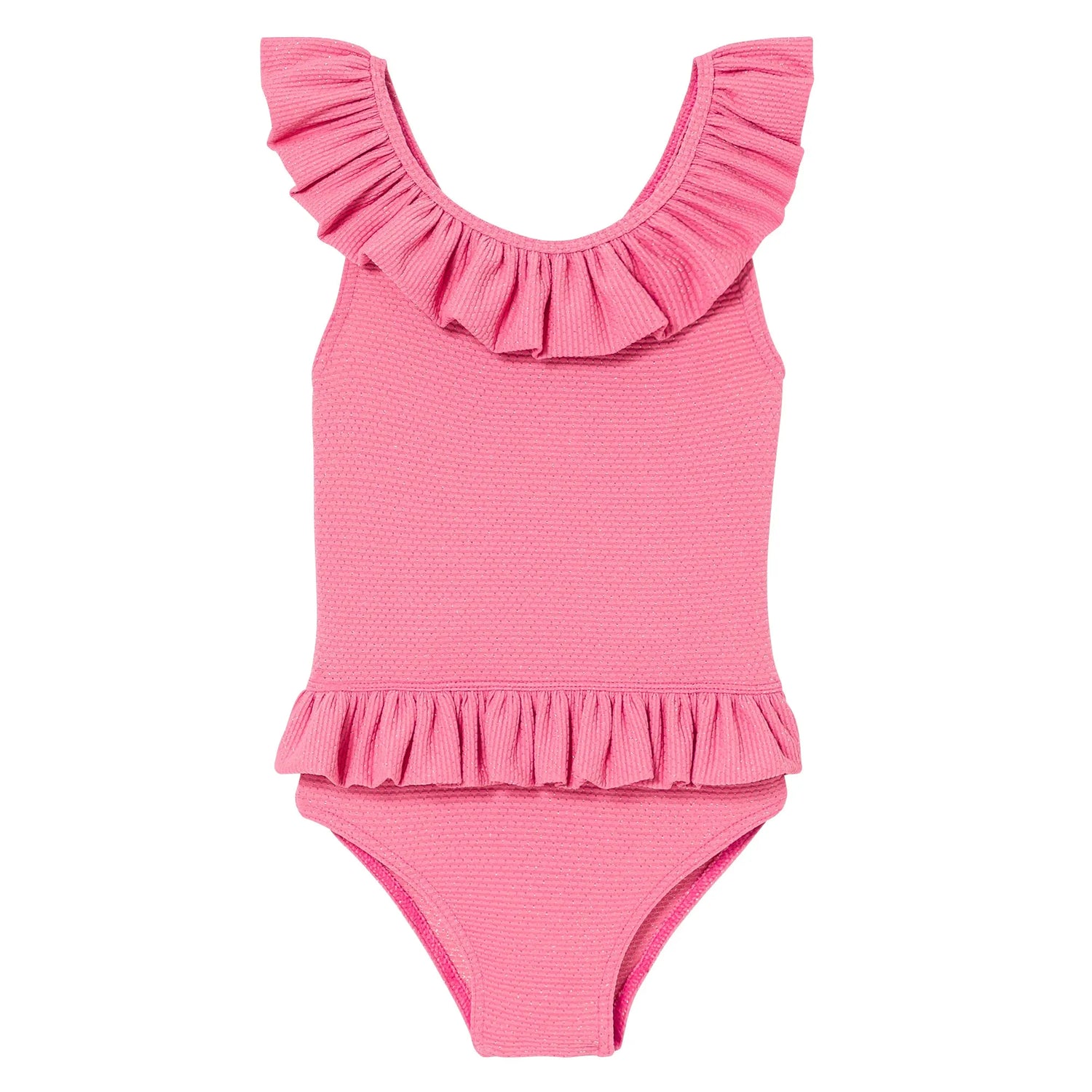 The Bahamas one-piece swimsuit, in a pretty pink shade, will add a sparkling touch to your little baby's vacation. With its lurex glitter effect, it will shine brightly under the sun!