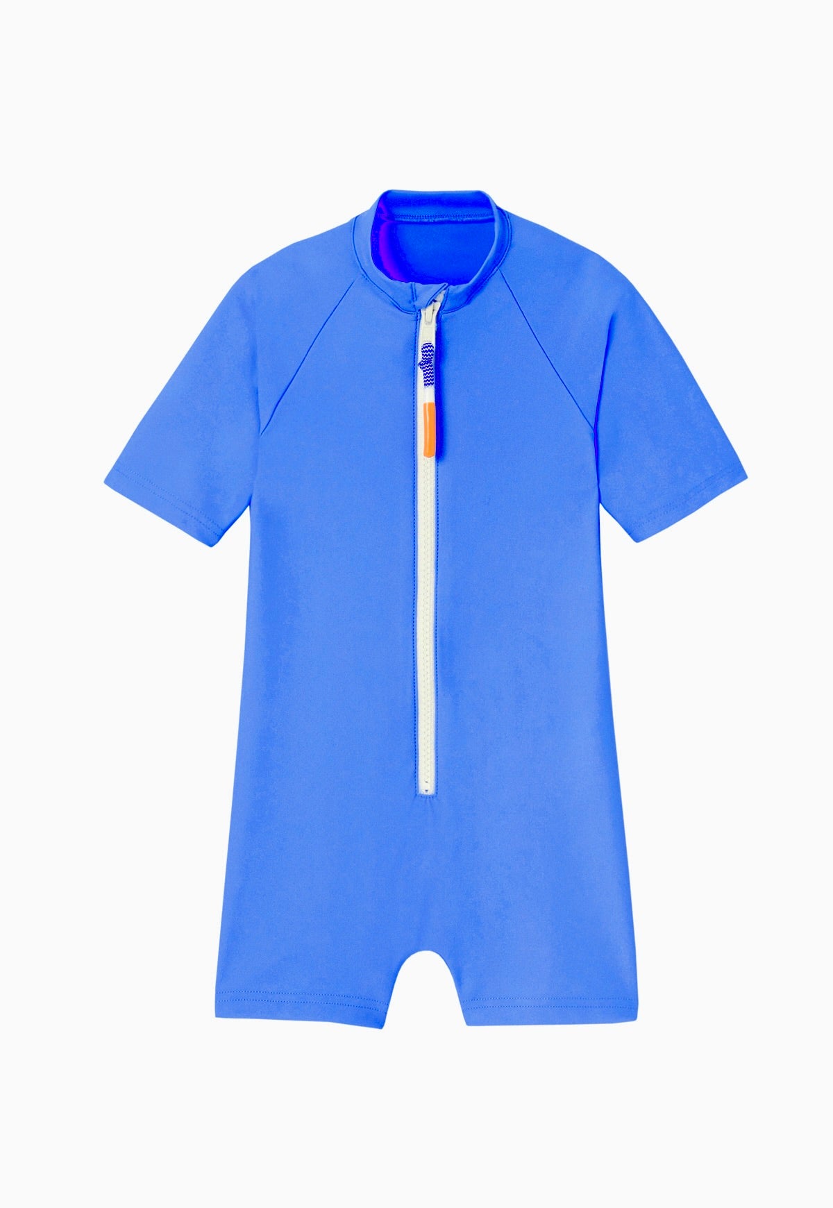 We love this adorable Byron jumpsuit! With its intense light blue color, it'll make your little boy the star of the beach or pool! Very easy to put on thanks to its long front zip, it's made from super-soft recycled fabric. Protect your little boy's skin in style this summer with our new UV protection suit. It comes in 2 superb colors, and as usual, it's delivered in a beach pouch. Let your little boy enjoy summer without sunburn. Although we recommend the use of sunscreen, this UV suit is a fabulous way to protect your baby's skin. The Byron UV suit is made from recycled fabric, is incredibly soft and dries in no time!