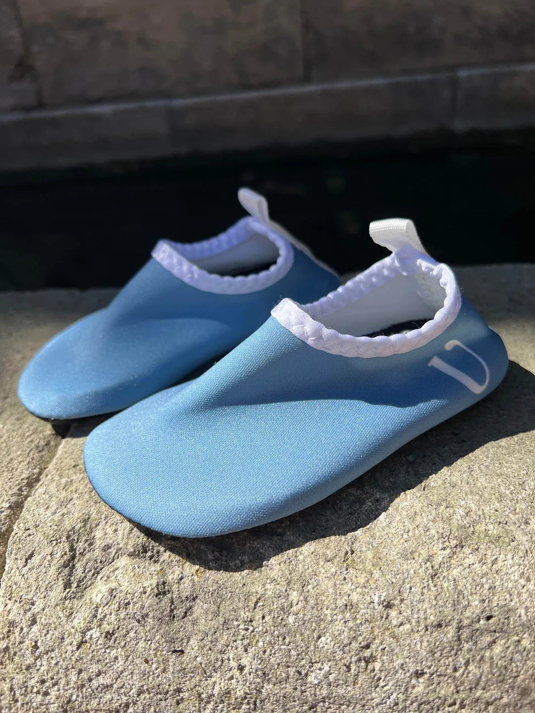 Swimming shoes are a must when you have small children, both to protect the delicate little feet from the sun, hot surfaces, pebbles and accidental falls.