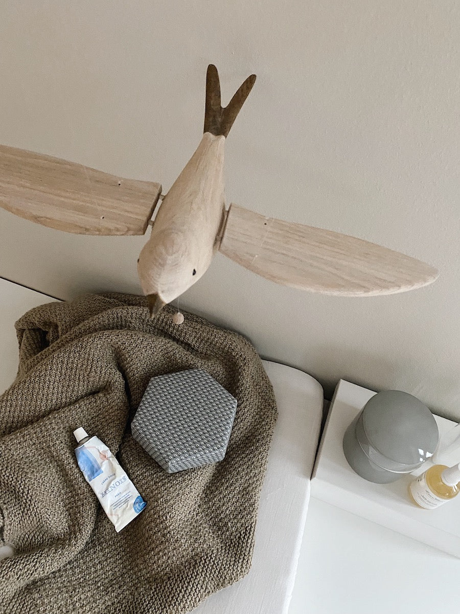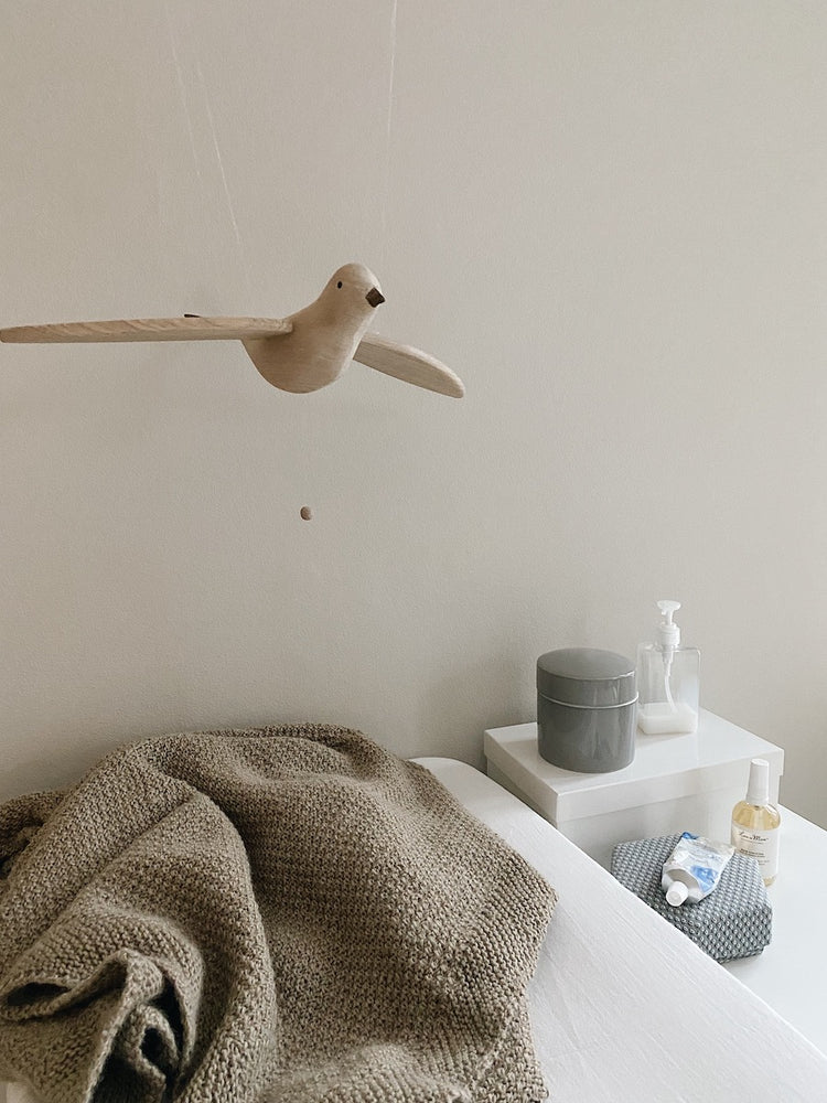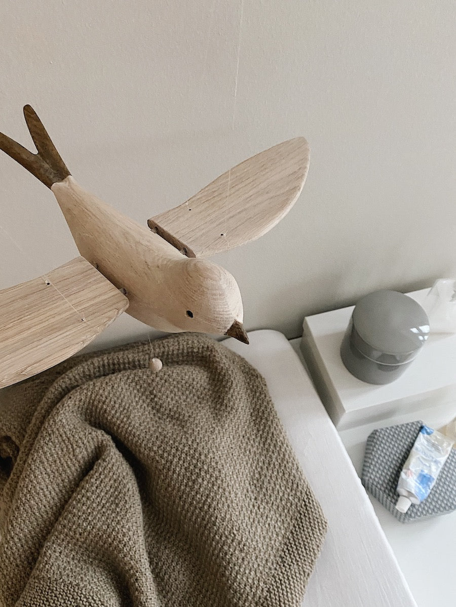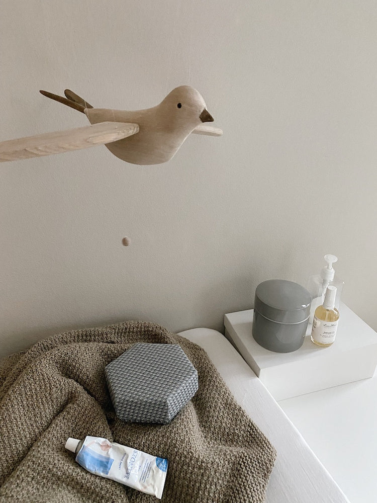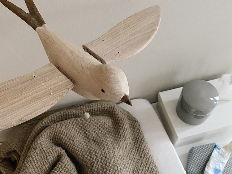 Klassíski fallegi fuglinn sem í öllum sínum einfaldleika getur hangið í barnaherberginu í mörg ár fram í tímann. Þegar þú togar í strenginn blakar Koko vængjunum glæsilega. Ef þú hengir hann yfir barnarúminu eða skiptiborðinu munu hreyfingar Koko virkja og örva skynfæri barnsins.