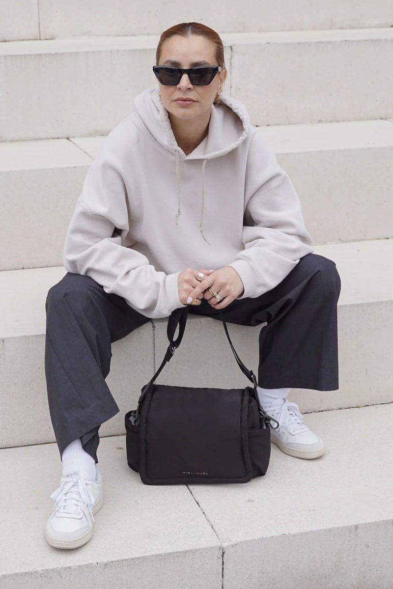 Nova's minimal exterior conceals a highly organised interior where its generous main compartment has space for everything you could need for an organised day out. Featuring two exterior side slip pockets and back slip pocket, as well as an insulated bottle sleeve, and 3 interior slip pockets, Nova also comes provided with a T+M signature padded changing mat. Nova can be easily converted from bag to buggy organiser with the provided detachable branded woven cross-body strap or detachable velcro stroller straps. For anyone looking for a changing bag that doesn't look anything like a changing bag - step this way.