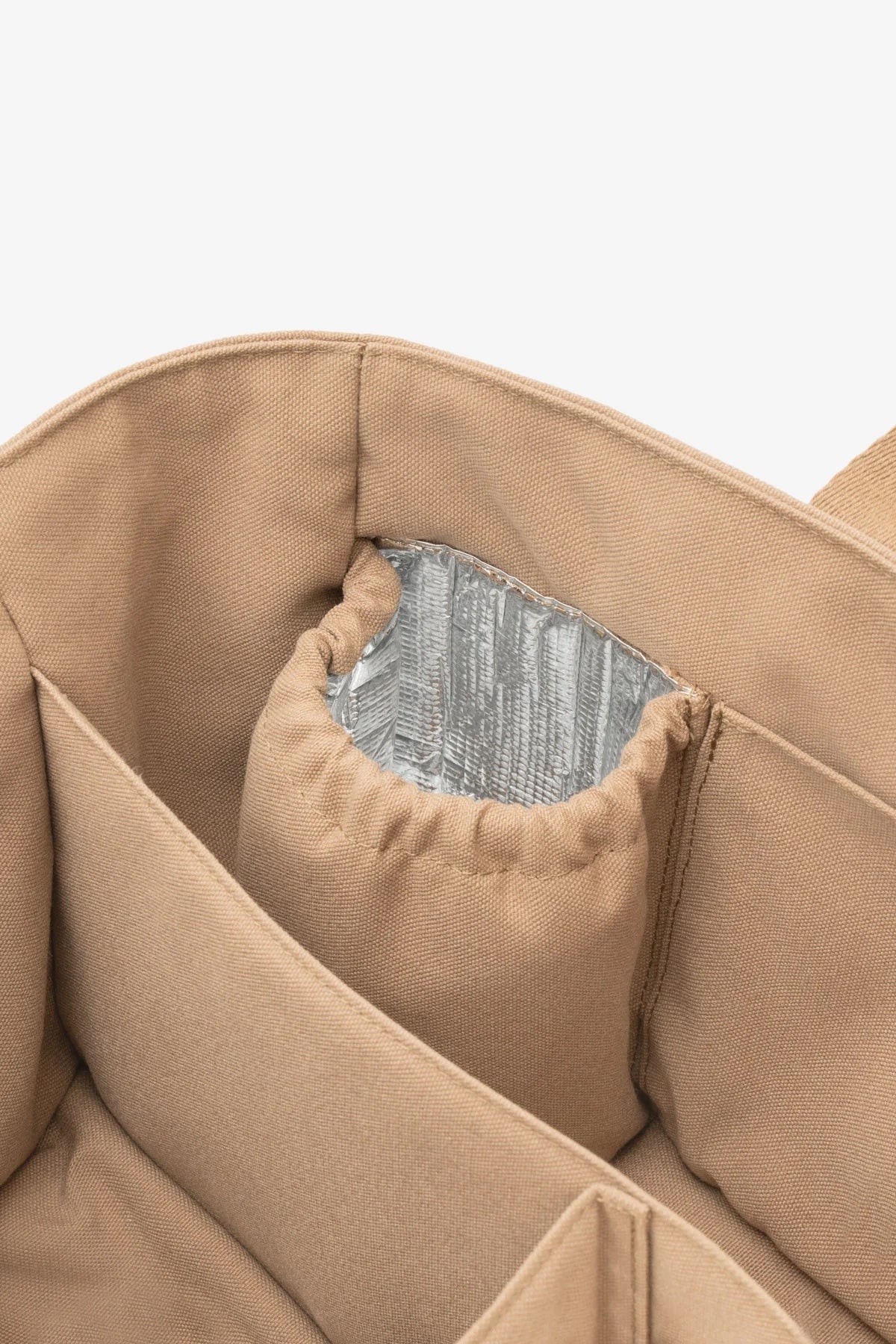 Can slot inside the T+M Canvas pocket tote