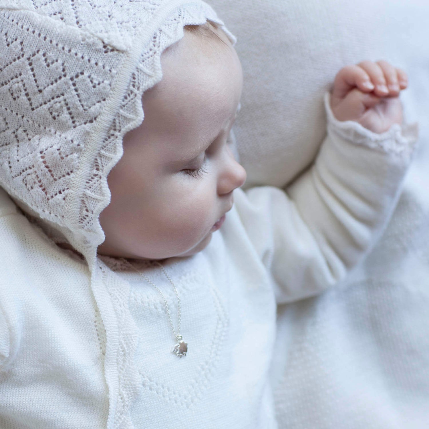 Beautiful christening hat / baptism hat knitted with Merino wool Extra fine. The hat matches our Christening dress.