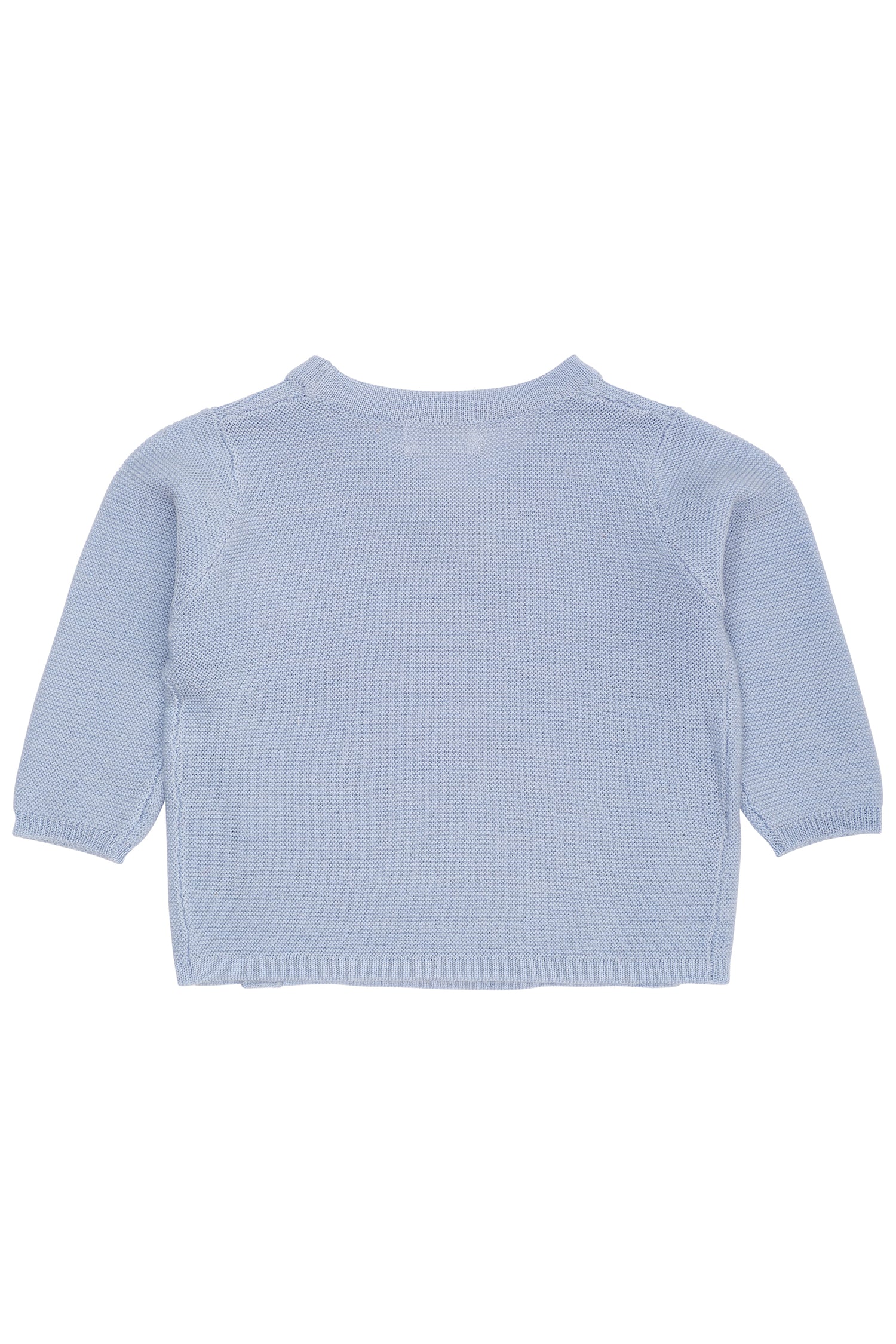 Knitted in pure merino wool, this cross-over cardigan wraps your little one in breathable warmth and softness. The garter stitch offers a cozy texture, while the side-tie closure makes dressing easy and secure. T