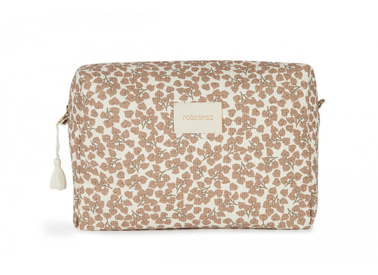 Large and practical, the Diva toiletry in honeycomb organic cotton, has an interior composed of an inner lining waterproof.You can choose to use it for baby accessories or for your own toiletries!