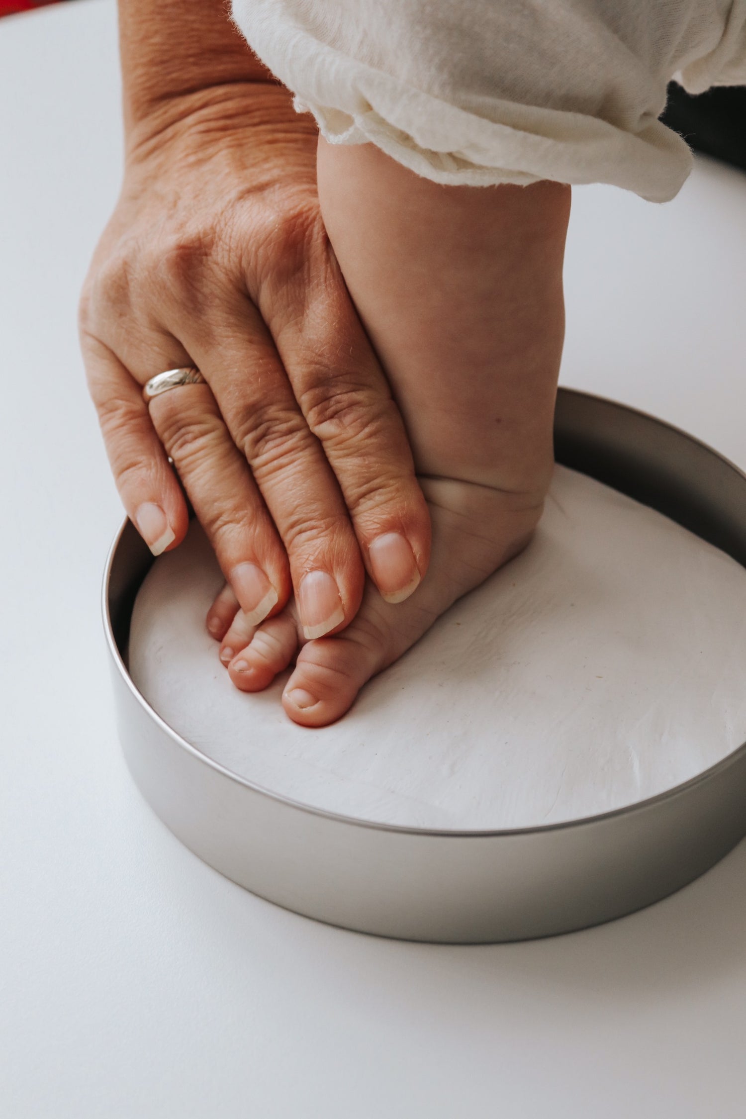 Heildarsett með öllu sem þú þarft til að fanga minningu um lítinn fót eða hönd barnsins heima! Útkoman er varanleg og falleg minning, fullkomin fyrir þitt eigið heimili eða sem gjöf.