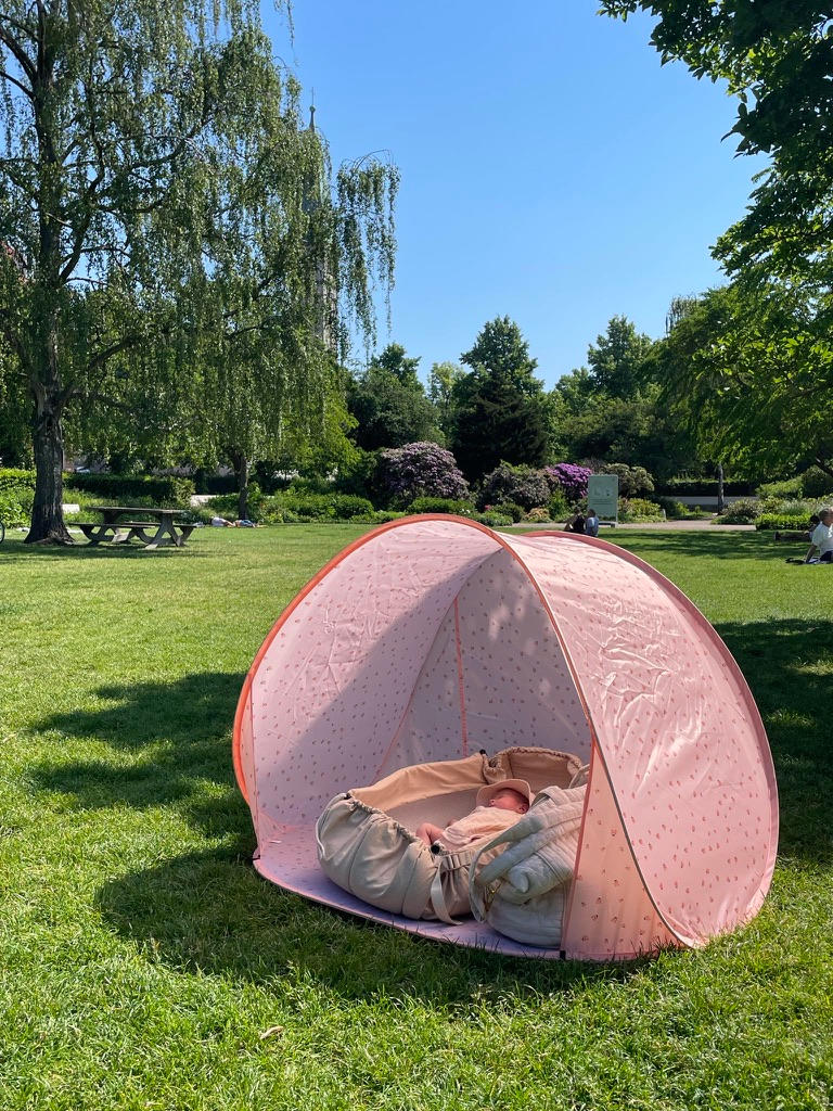 The tent functions as a shelter and shade tent and protects against the sun's UV rays. The wide opening ensures good air circulation in the tent, so your child doesn't get too hot.