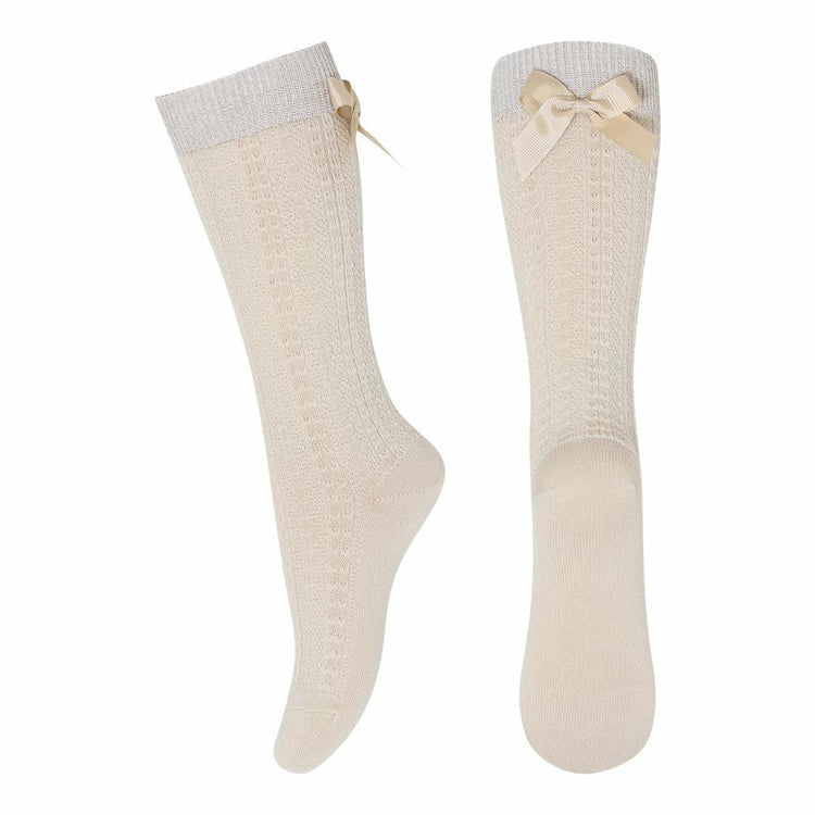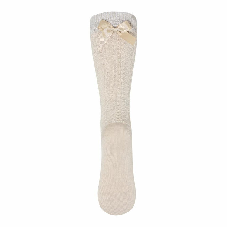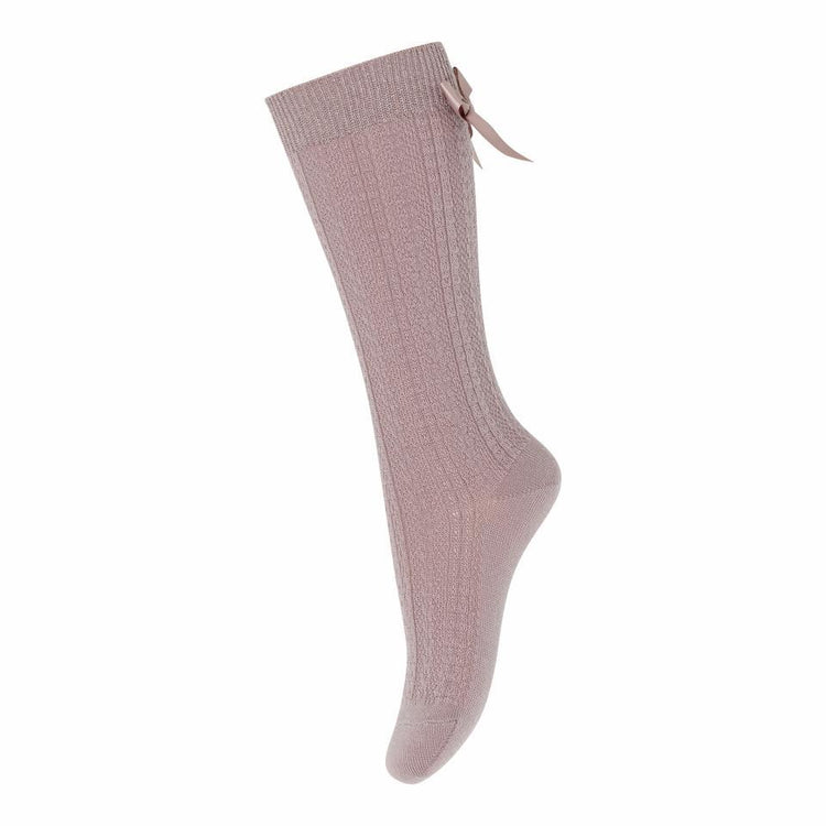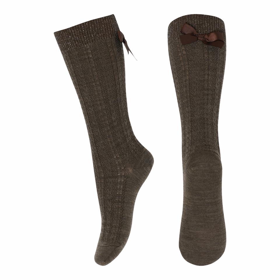 The sock is made with a decorative bow on the calf and glitter details on the edge for a girly look.