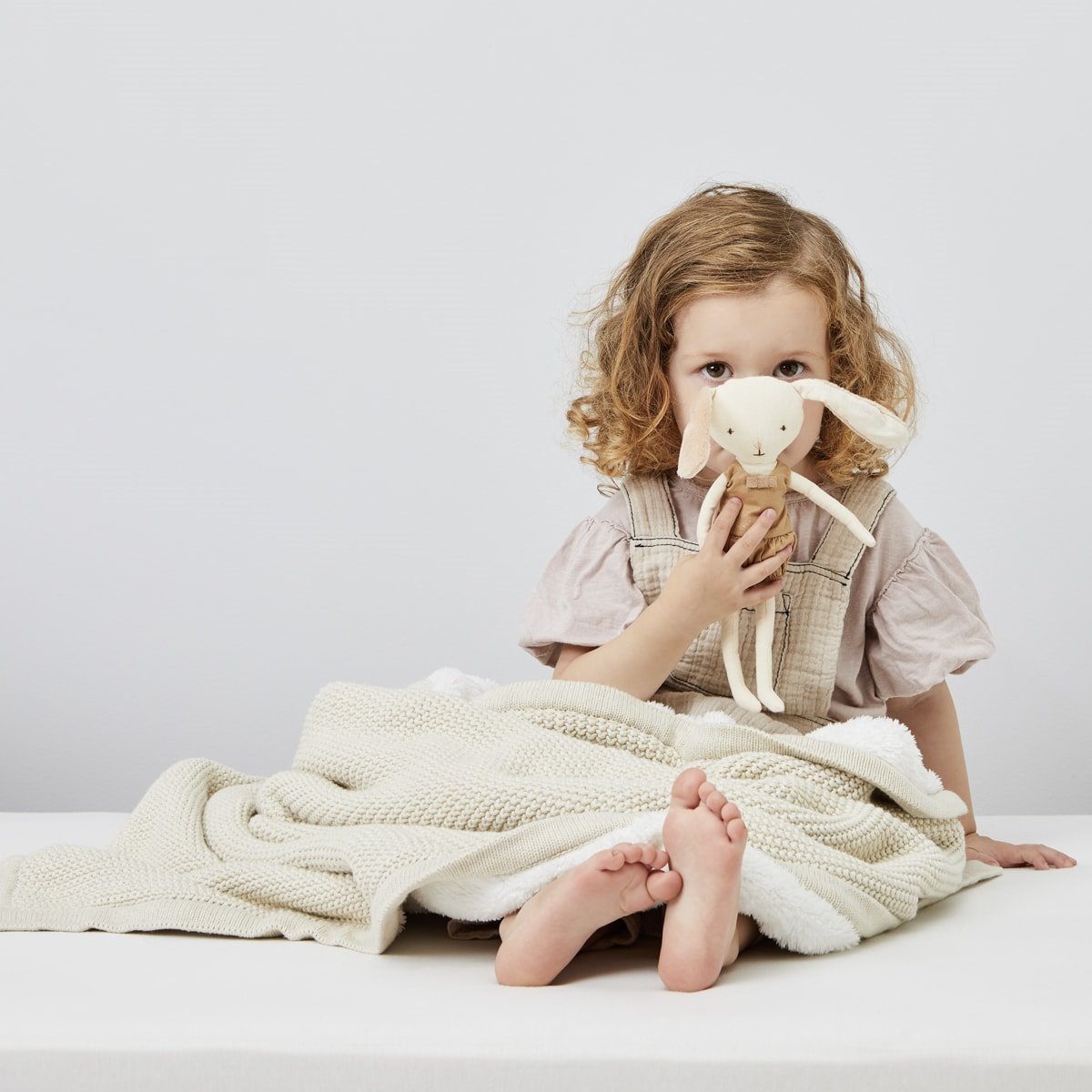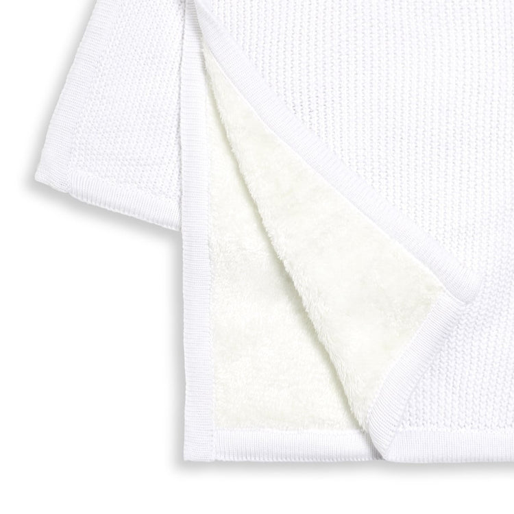 This luxury fleece baby blanket is crafted with an organic cotton moss stitch knit and super soft Sherpa fleece lining, keeping your baby cosy and warm both in the home and when out and about in the pram.