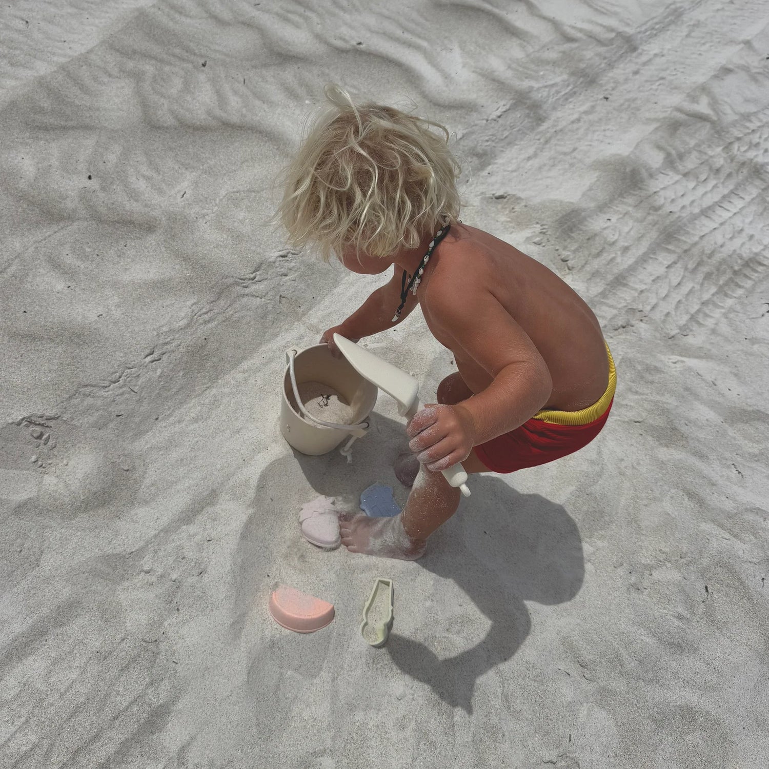 - Includes 1 bucket, 1 spade, and 4 sand molds: campervan, watermelon, ice cream, and strawberry.