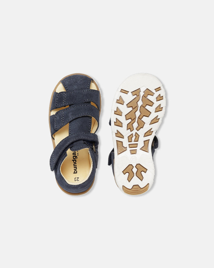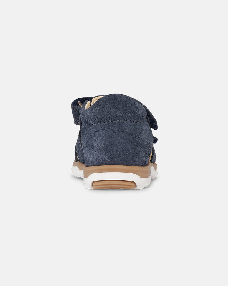 Standard fitLWG-certified SuedeFree from harmful chemicalsVegetable-tanned leather liningAdjustable Velcro closure with shortening optionFlexible TPR soleFirm heel and toe capRecommended growth allowance: 12-15 mm Sofus is a well-crafted and comfortable sandal with a sporty, modern look, perfect for the active child who loves to run, climb, and explore. Whether at nursery, preschool, or school, Sofus provides children with the support and freedom they need for a full day of play and movement.  The soft and flexible construction makes the sandal incredibly comfortable, even during extended wear. Sofus features a closed toe, which protects little toes from bumps and scrapes as children move over various surfaces—from grass and gravel to asphalt.  The sturdy heel cap provides optimal support around the heel and ankle, which is crucial for maintaining stable, healthy movement in growing children. This combination of a closed toe and solid heel cap makes the sandal a secure, functional choice that offers both support and peace of mind.  The sandal has practical, easy-to-adjust Velcro straps that allow for a precise fit tailored to each child’s foot. The Velcro fastening ensures the sandal stays firmly on the foot during activity, while remaining easy for both children and adults to put on and take off.  Sofus has a standard fit, especially suited for children with narrower feet. Its precise, close fit wraps around the foot snugly, giving the child a sense of stability and support.